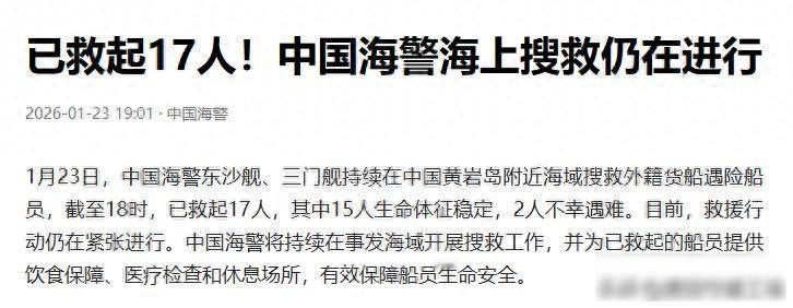 黄岩岛外货轮倾覆,菲方刚获救就拉警报,演习名单连夜敲定 1月22号晚上,一艘外国散货船在黄岩岛西北55海里处突然发生倾斜,信号中断,船上21人失去联系,南部战区立即派出军机展开搜寻,两艘中国海警船也顶着风浪赶往现场,第二天中午之前,17人被救起,其中15人能够说话和行动,2人未能挽回生命,整个过程中,海警人员没有提及海域归属或主权主张,只专注于救援行动。 可不到一天时间,菲律宾海岸警卫队就发表声明,说那片海域属于他们的专属经济区,还声称自己已经派船去展开救援,但查遍所有公开记录发现,菲方当天根本没有调动任何船只或飞机,他们连船都没出动,只是嘴上说正在前往,更让人奇怪的是,被救上来的17个人里,有好几个是菲律宾籍船员,按理说应该表达感谢,结果并没有,反而就在同一天,菲方宣布从即日起到3月31日,要在黄岩岛附近举行大规模军事演习,时间持续两个多月,覆盖的又是国际商船经常往来的主要航道。 演习不是临时决定的,之前几个月里菲律宾军机多次飞到黄岩岛附近活动,中国海军通过无线电发出过好几次警告,菲律宾方面每次都回应说这是合法行动,符合《联合国海洋法公约》,但他们没有提到的是,中国在争议海域一直没有使用武力,也没有驱逐过菲律宾渔船,连海警船都很少主动靠近,这种克制行为他们视而不见。 背后还有别的动作,2025年日本和菲律宾签署的《互惠准入协议》正式生效,日本开始向菲律宾提供二手舰艇和雷达设备,还在讨论出售防空导弹的事项,如今日本已经成为菲律宾最重要的防务伙伴,这不是一般的合作,明显是想借助菲律宾这个地方来牵制中国,同时把自己的势力进一步扩展到西太平洋地区。 美国方面也在采取行动,最近批准了多个新基地供菲律宾军队使用,美军轮换驻扎和联合演习的频率明显增加,自小马科斯就任总统以来,彻底改变了前任杜特尔特在美中之间保持平衡的做法,2024年的一项民意调查显示,高达91%的菲律宾民众对中国持不信任态度,76%的人认为中国构成最大威胁,这种舆论倾向与菲律宾政府不断释放信息有关,例如反复报道中国海警拦截渔船、驱赶渔民的事件,即便视频证据与事实存在出入也照常播出,去年7月小马科斯发表国情咨文时声称不与任何国家为敌,但随后就推动与美国和日本开展联合巡逻,并批准在马拉帕亚气田以东仅五公里处开钻新油气井,该地点距离中方主张的界线非常接近。 菲律宾现在做的事情很清楚,在海上开发方面尽量贴着边界走,在舆论上不断抹黑中国,军事上依靠美国和日本撑腰,外交上直接站队,他们打的算盘很响,想用最少的力气,换到大国博弈里的存在感,可是菲律宾自己没有远洋舰队,也没有纵深防御的能力,真要打起来,根本扛不了几天,这次救援和演习安排在同一天,不是碰巧,中国刚把人救上来,菲律宾那边马上拉响演习警报,这不是应急反应,是提前安排好的剧本,一边救人,一边摆阵,一边退让,一边亮剑,南海的水,越来越浑了。