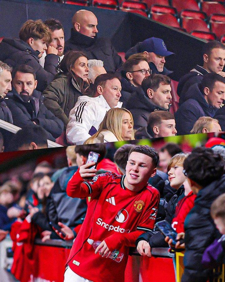 【星二代】鲁尼的儿子凯-鲁尼第一次在老特拉福德球场代表曼联U18队出战青年足总杯比赛,鲁尼和卡里克在看台上观战。英超
