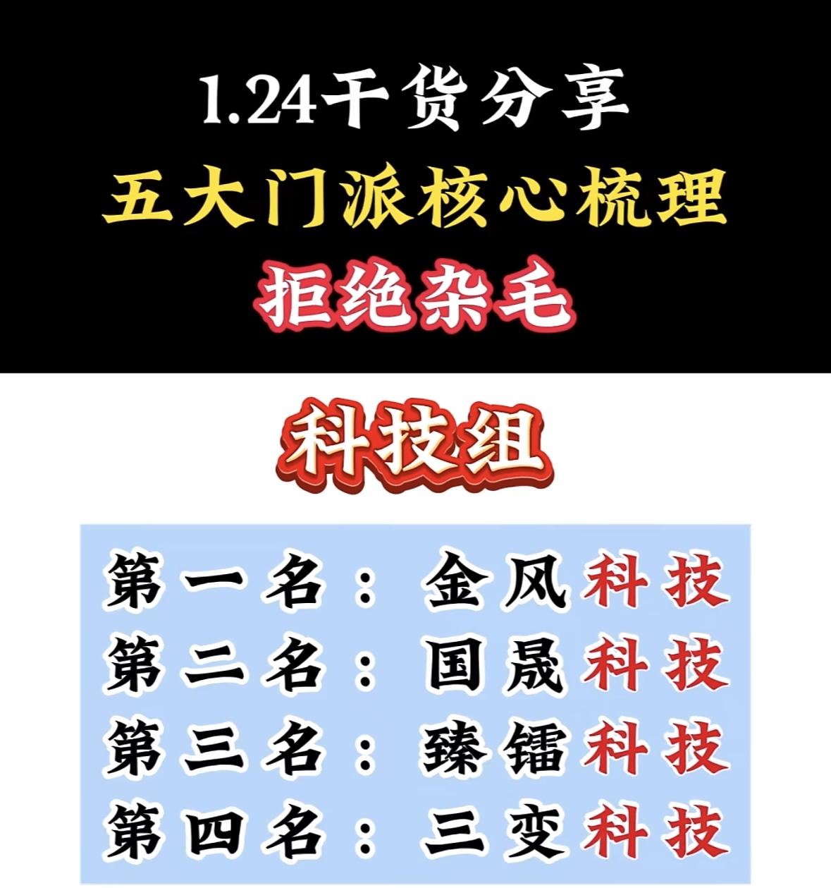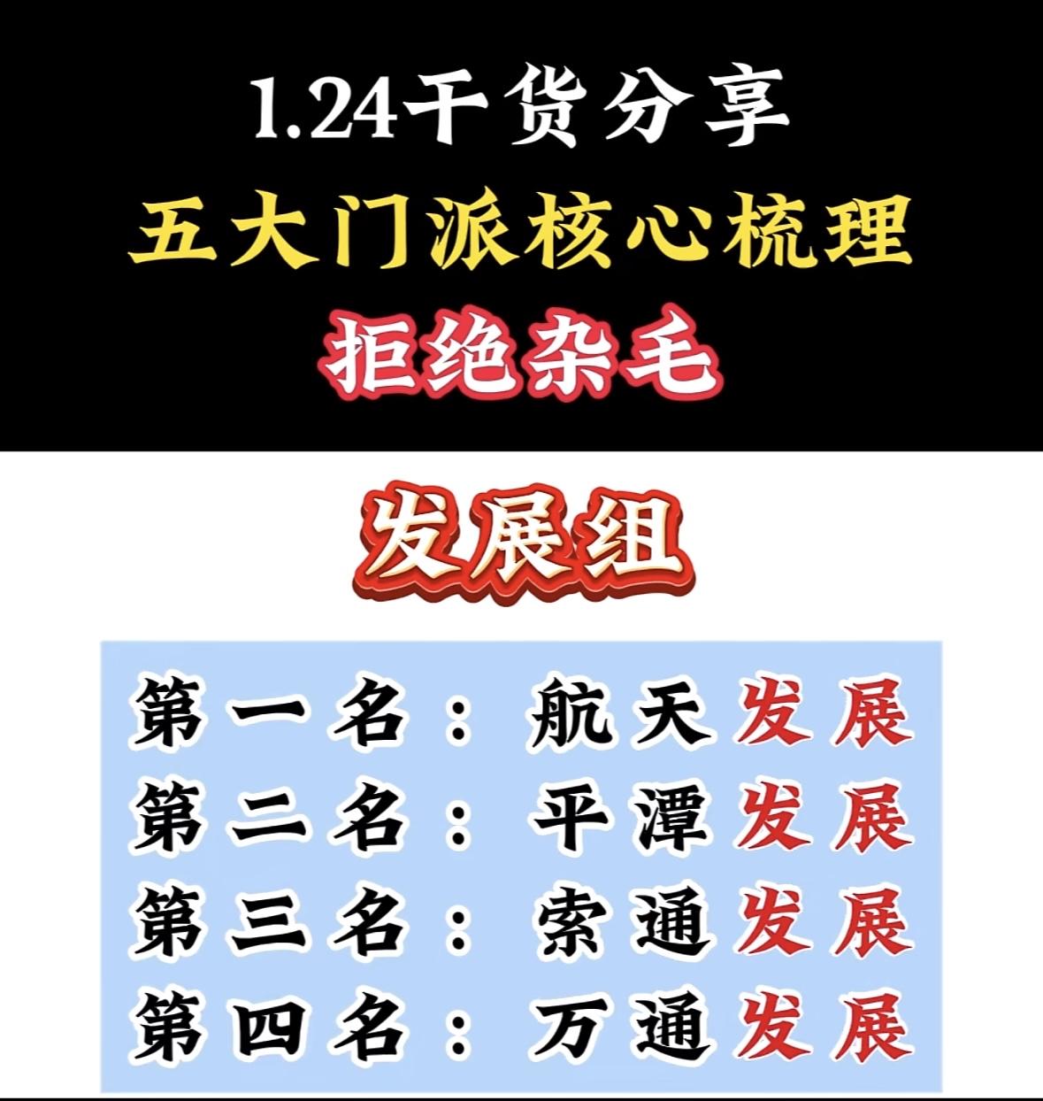 1月24日干货分享!五大核心派系梳理,拒绝杂毛!🔥 航天五强出炉:电子领跑,动力紧随,环宇智装齐飞,聚焦核心拒绝杂毛。 航天板块龙头股排名出炉,电子领跑动力紧随,环宇智装稳居前列,聚焦核心拒绝杂毛。