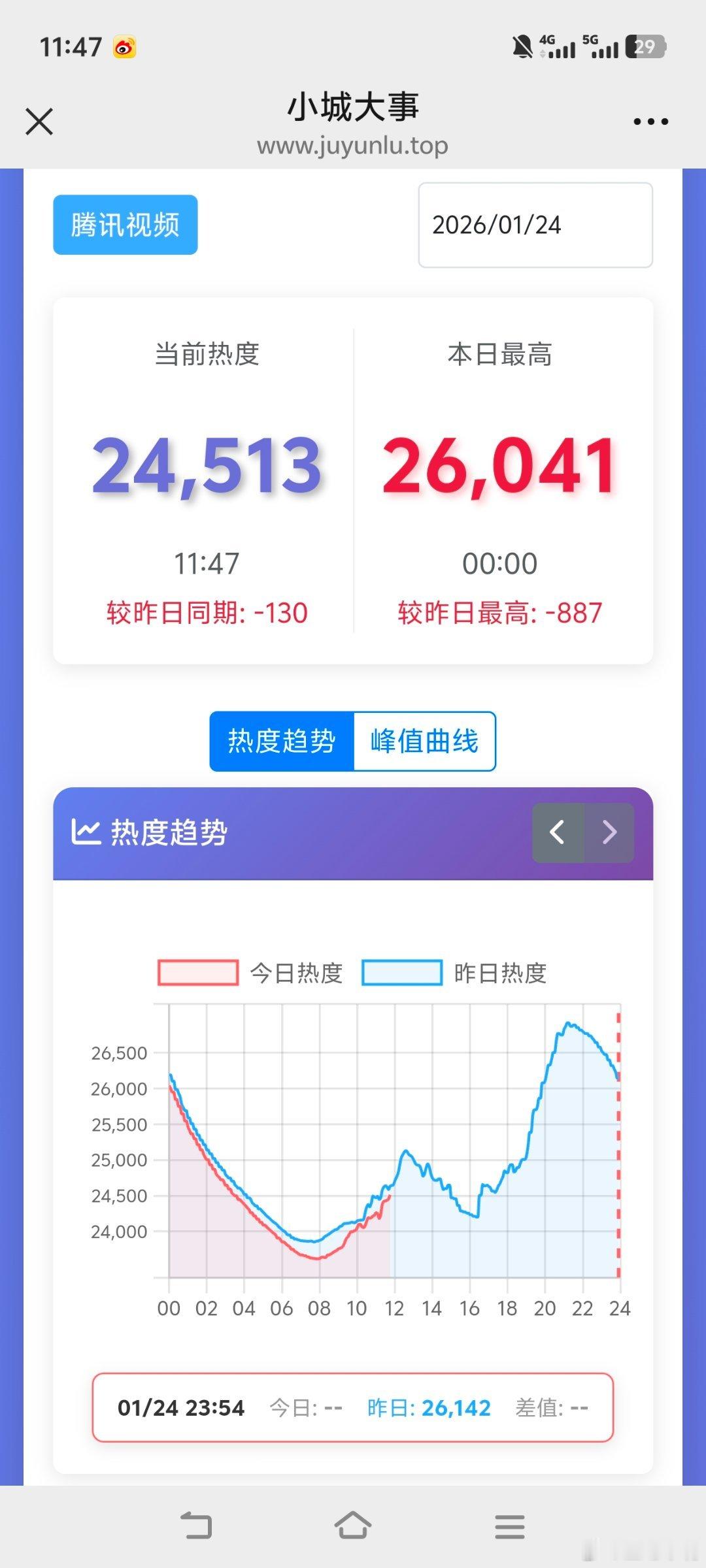 小城大事小城大事热度 这部剧还有机会破3万吗?!网传1月26日周一超点!还有三四天冲高的机会。目前热度最高的一天是1月21日27481!