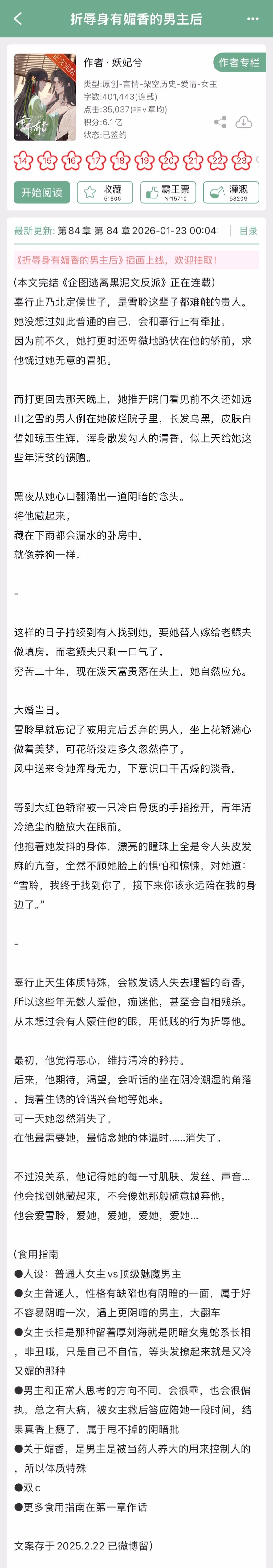 妖妃兮的《折辱身有媚香的男主后》完结啦!古言➕疯批阴暗男主,普通人女主x顶级魅魔男主寒假不打烊寒假看什么