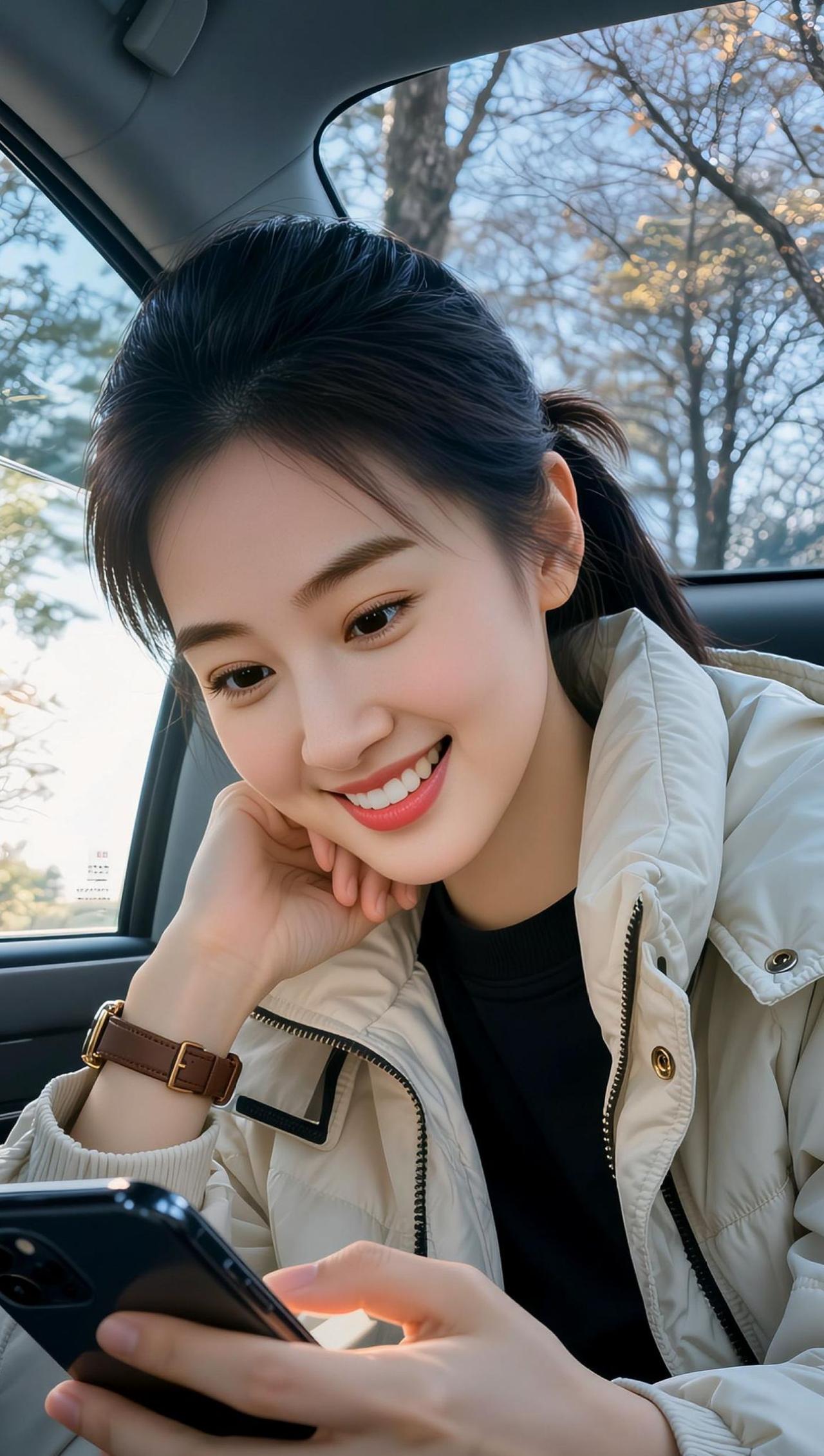 AI车内氛围感写真 抖音ai创作 清纯美女 心动的感觉