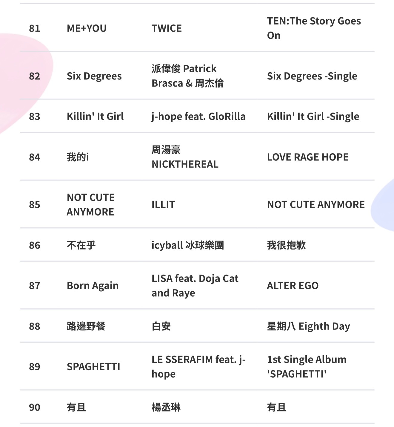 hitFM百大单曲开始揭晓 81-90有杨丞琳的《有且》,SPAGHETTI在台湾不红吗?