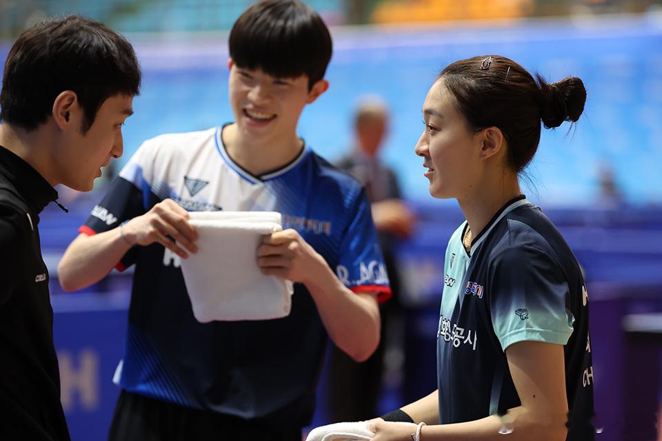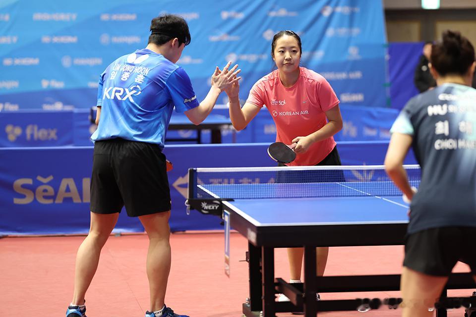 【韩媒】申裕斌/林钟勋组合,首次出战综合锦标赛,苦战之后最终以 3比2(7-11、8-11、11-8、11-8、11-8) 逆转取胜赛后采访中,林钟勋/申裕斌表示:“国内选手整体实力非常强,和外国选手交手相比,反而感觉更难。”对于比赛初段失误较多的原因,他们分析道:“今天对手的状态非常好,尤其是短颗粒胶皮的适应并不容易,接发球没能完全按预期发挥。”不过他们也补充说:“即便如此,我们还是尽量发挥彼此的优势,不断磨合配合,这一点最终成为赢球的关键。”两人表示:“比起单纯以夺冠为目标,更希望专注过程,一场一场打出高质量的比赛。”