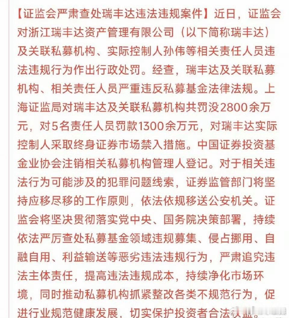 瑞丰达案领史上最重私募罚单贪婪的投资人,遇到了无底线的骗子,结果是悲剧。他不是做私募的,只是把私募当做工具行骗而已,关键在人为。我的粉丝、会员、基金投资人,遇到我是他们福报,因为我是善良的人,同样我遇到你们也是我福报,我们一起做着正能量的事情。