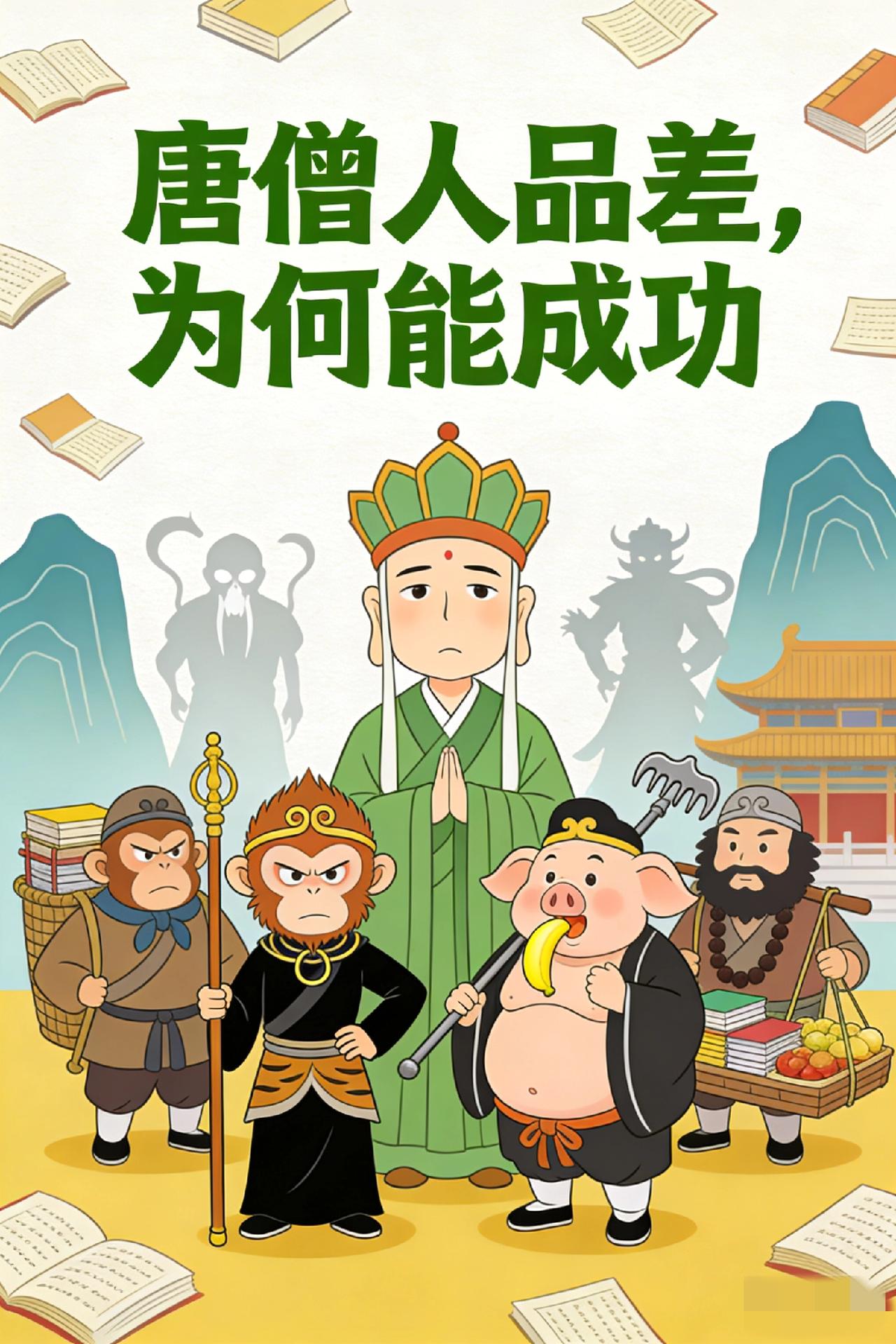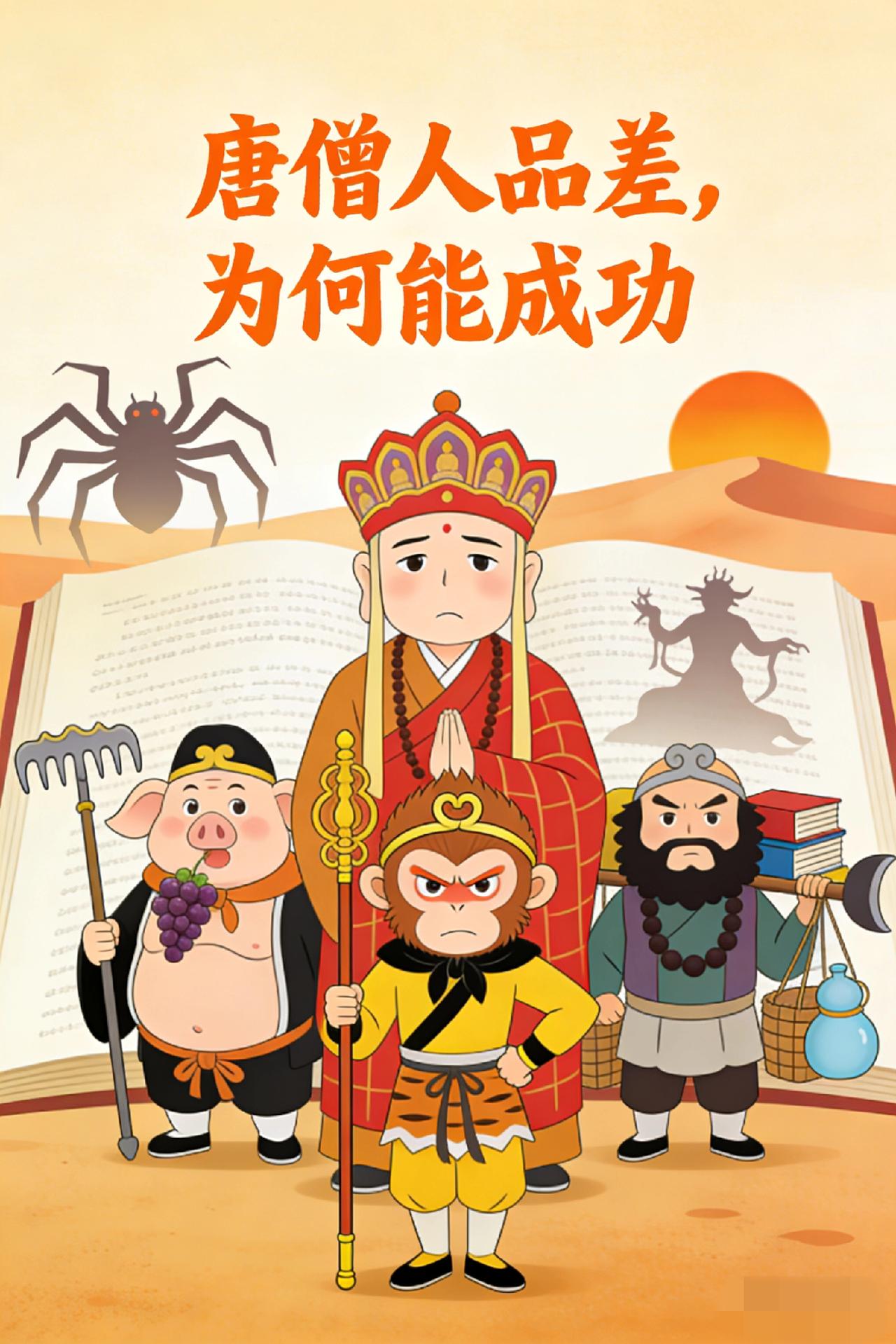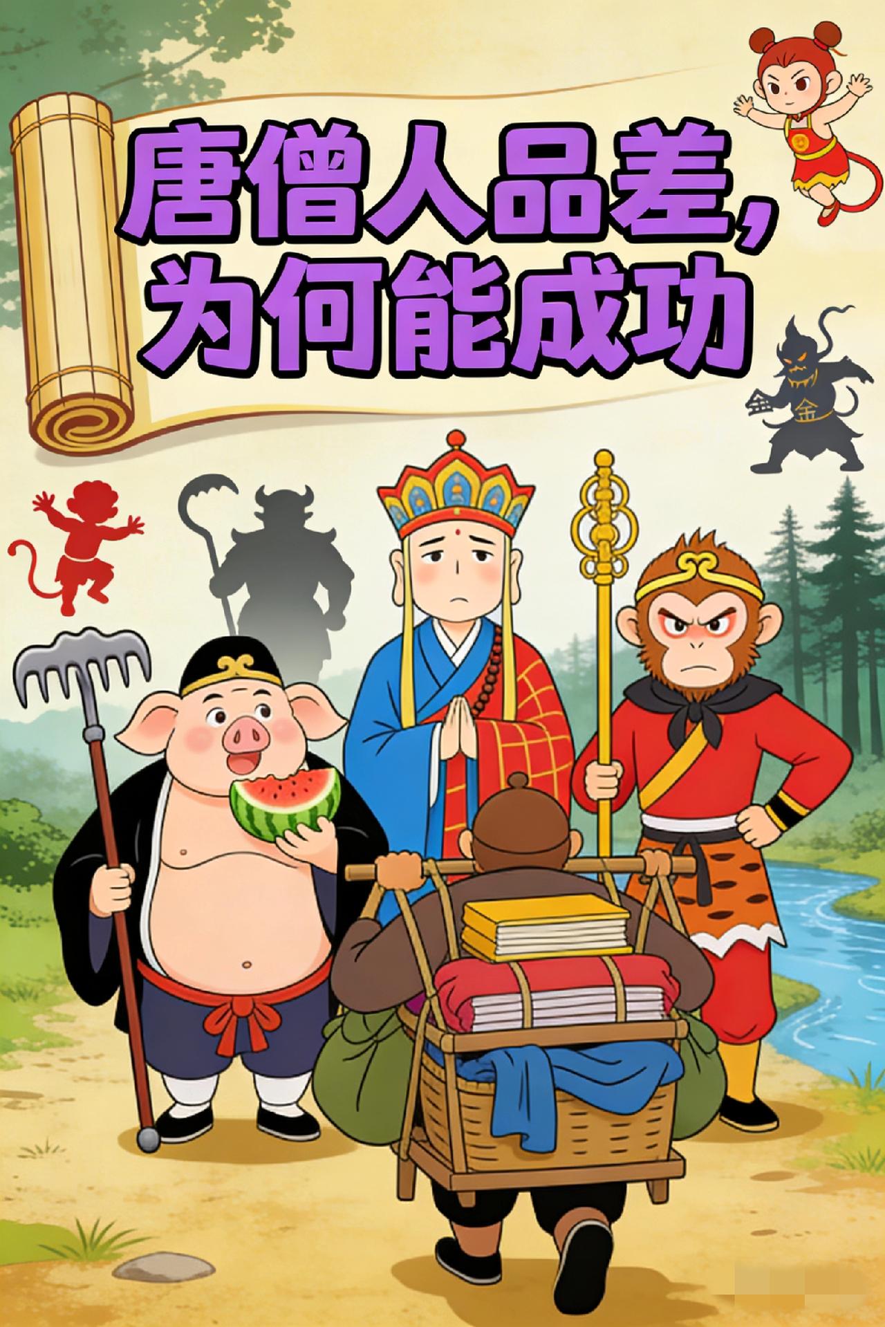 唐僧就是个伪君子,加窝囊废,不光人品极差,能力也拉胯。 他成功,不就是走后门吗? 唉——,你还别不服。唐僧能领着三个“问题员工”取到真经,还真有团队管理的“隐藏技巧”。 1. 目标感焊死在脑里,再难不跑偏 全书100回,唐僧被妖怪吓哭30+次,被徒弟气到想散伙N次,但从没说过“取经算了”。第14回刚收悟空,就明确“我去西天拜佛求经,此生不渝”;哪怕第56回被悟空误会、第65回被黄眉老怪困在小雷音寺,也没动摇过目标。 2. 会“画饼”还会“授权”,抓大放小 唐僧自己肩不能扛手不能提,却懂“用人所长”:悟空能打,就让他当“首席战斗力”,打怪全靠他;八戒会水,就让他当“水下侦察兵”,流沙河、通天河全靠他探路;沙僧老实,就让他管后勤挑担子,从不让他干“超出能力范围的活”。 更绝的是“画饼能力”:每次徒弟抱怨“取经太难”,他就说“待取到真经,你等都能修成正果”,硬生生让三个桀骜不驯的徒弟跟着他吃苦。 3. 有“主角光环”,更懂“抱大腿” 唐僧的“金蝉子转世”身份,就是天生的“资源密码”:观音菩萨全程保驾护航,各路神仙随叫随到,遇到搞不定的妖怪,总有“后台”来救场。更关键的是,他懂“借力”:第99回通天河老鼋驮他过河,他虽然忘了问寿命,但全程客气有礼,没摆师父架子。 4. 底线不碰,原则问题绝不让步 唐僧虽然懦弱双标,但“取经”的核心原则绝不让步:第23回四圣试禅心,八戒想留下娶亲,他当场翻脸“我等是出家人,岂能贪恋女色”;第50回金兜山,悟空劝他别捡路边的袈裟,他虽然固执,但也是怕“违背佛门规矩”。 所以,唐僧的成功告诉我们: 职场中,你不必做一个“完美的人”,但要做一个“有目标、会借力、懂底线”的人; 唐僧