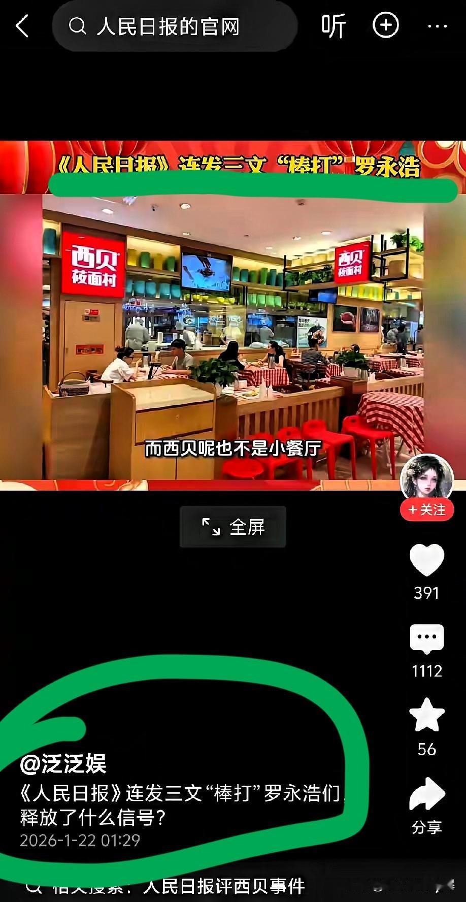 人民日报又不是法官 文章又不是判词 他甚至不用为自己的错误言论买单! 只不过是某些个人的舆论武器而已。 很多人在那骂罗永浩搞垮了西贝,这逻辑简直可笑。罗永浩充其量就是个探照灯。西贝贾国龙自己底子不干净,被光照到了龌龊处,能赖光太亮吗? 若身正不怕影子斜,这波曝光本该是泼天的富贵,可惜它接不住。铁打的胃口,流水的餐饮巨头。 它倒了,天塌不下来,反而把垄断的养分吐出来,滋养那些踏踏实实做菜的小店。一鲸落,万物生。 自然界的法则,放在商业江湖里,一样残酷又公平。就此大家怎么看这个问题啊? [免责申明]文章的时间、过程、图片全部来自于网络