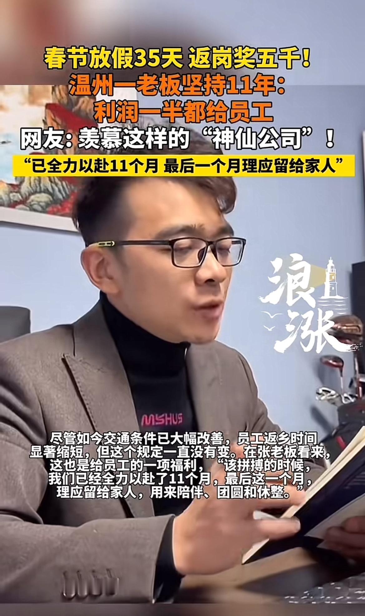 这老板简直是“神仙中的神仙”!春节放35天假,这是什么逆天操作?别的公司顶多十来天假,还得想着抢票、赶春运。这公司员工可好,能安安心心在家陪家人,走亲访友,甚至还能来个长途旅行。 而且还有返岗奖五千块,这就跟白捡钱一样。这老板不仅给员工充足的休息时间,还在金钱上给予激励,员工回来干活肯定动力满满。这样的公司,员工忠诚度肯定超高,离职率估计低得可怜。要是我能碰上这样的老板,那真是做梦都能笑醒,工作起来不得像打了鸡血一样!