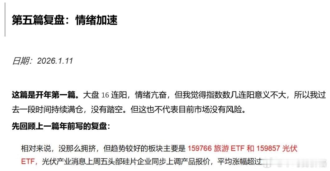 这是1.11在铁粉群发的免费周度复盘分享,提到光伏etf。以后没时间我就降低这种复盘频率,因为很多人看完,连个赞也懒得点。会员群我会持续输出,起码不是自言自语。