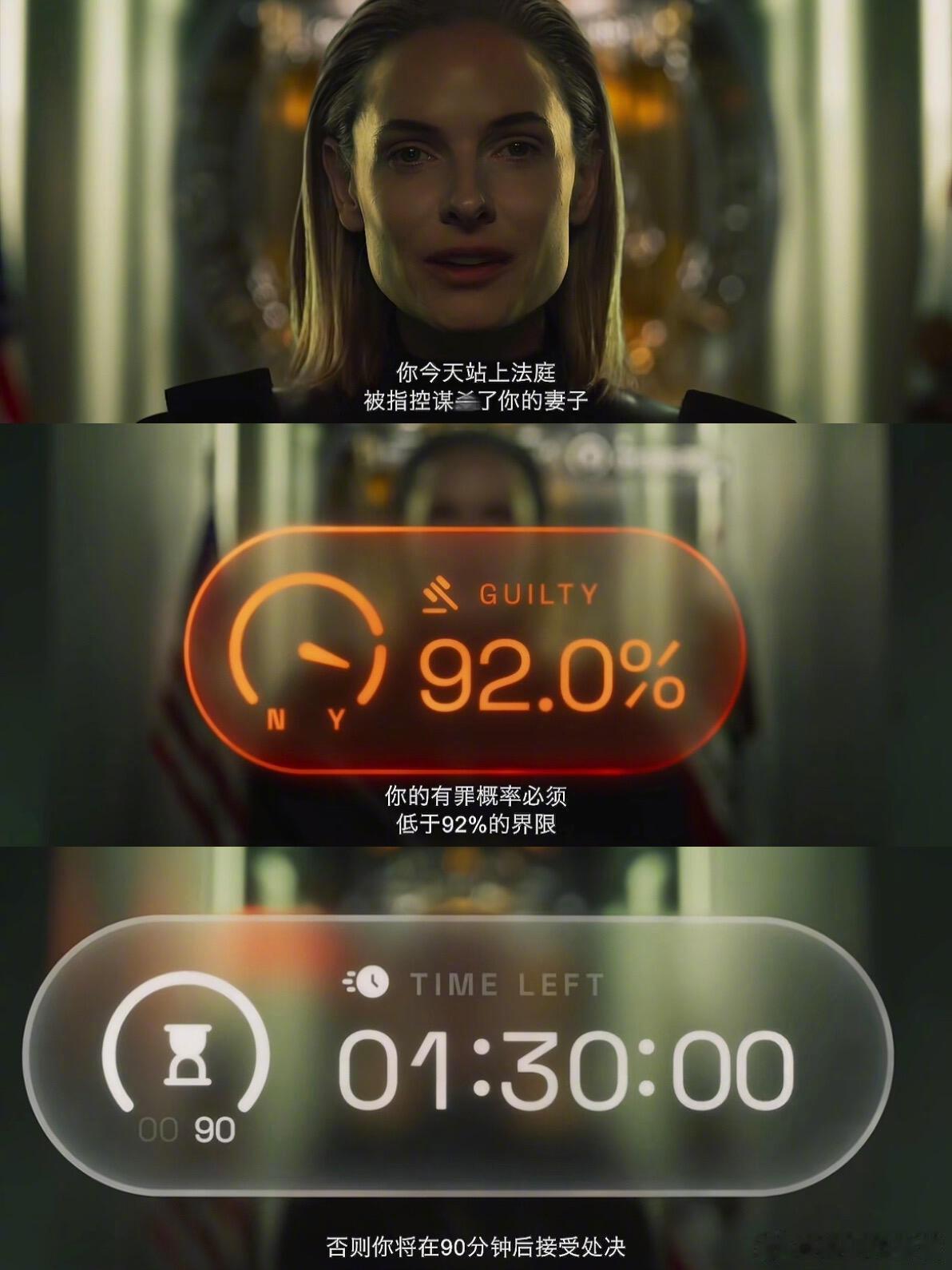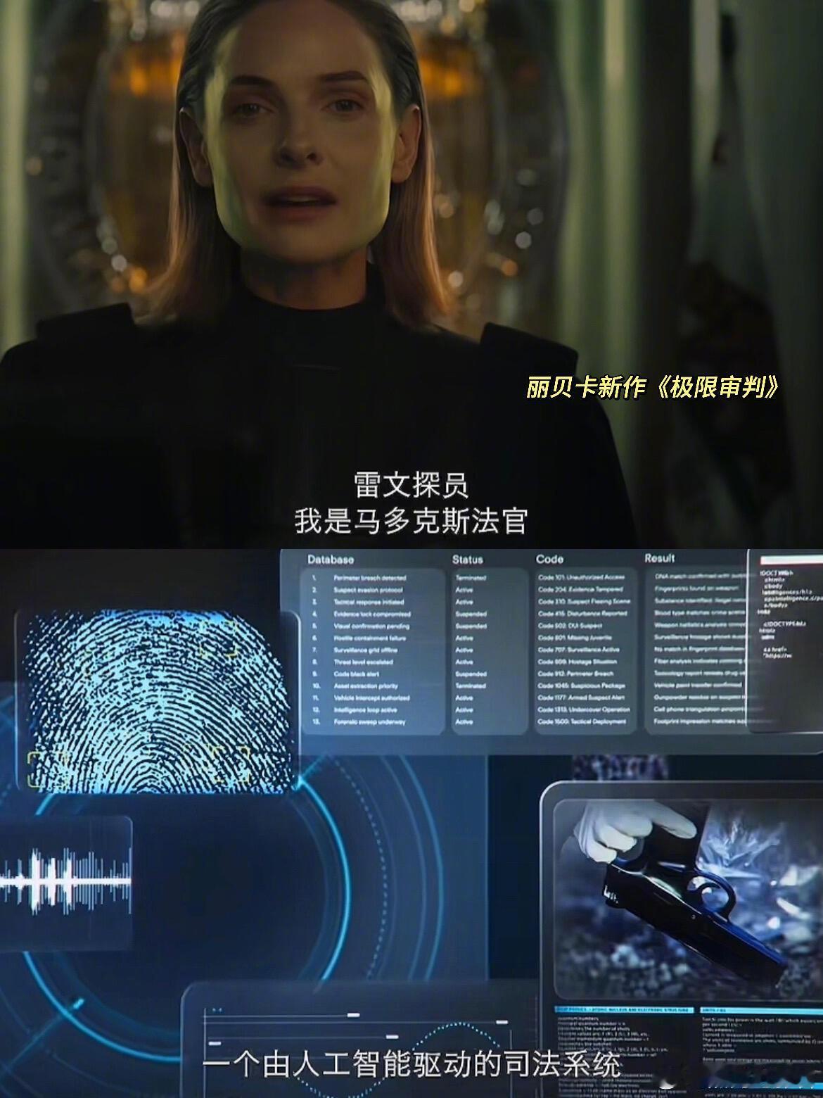 没有人能在了解过丽贝卡后不爱上她的当年《马戏之王》仅20来分钟的戏份丽贝卡·弗格森又一次出圈Never Enough至今还躺在我的每日歌单里后来陆续补了她的《沙丘》《碟中谍》系列还看了一些她的戏外采访我更懂那句“演员本人和角色同频共振”了面对男主持调侃她总挑帅哥合作她霸气回应:“我只和我欣赏的人合作老娘不在乎ta是否长了个*”在遭遇职场pua后丽贝卡整理完情绪,第二天就选择反击为自己的权益发声后来她又抓住机会成为《羊毛战记》的主演兼制片人因为拥有话语权才能争取更好的发展丽贝卡说自己没有什么大野心只是想把更多好角色、好剧本带给观众这让我更加期待第1时间就去看了她主演的新片《极限审判》!丽贝卡这次饰演的是只认事实的无情AI法官马多克斯这将是大银幕上的又一经典角色那种不容置疑的、冷峻的AI凝视感让人毛骨悚然在影片的世界观里司fa系统不再由真实的人组建而是通过人工智能驱动它能接入每个摄像头、手机和数据库被指认的人只能通过云端资源搜集证据向AI法官自证清白而曾经相信算法一定能带来正义参与创建这套系统的男主雷文探员突然被宣判s刑,原因是谋s妻子并且他只有90分钟的时间自证在这90分钟里剧情层层反转、人与AI高能博弈画面中出现的每一个人都有可能是嫌疑人…