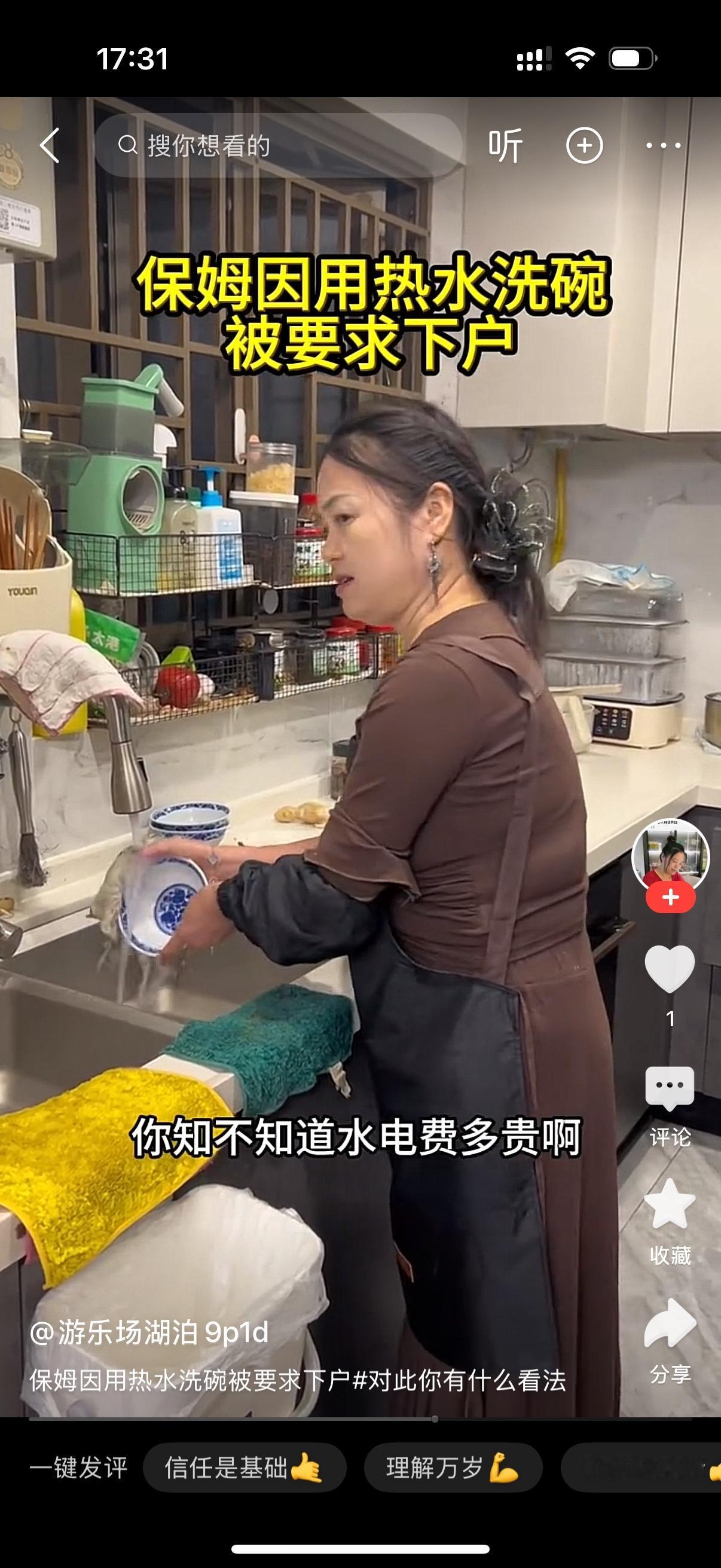 雇主看到保姆用热水在洗碗,心里慌的一匹。她马上走过去说,阿姨,你怎么用热水洗碗?保姆傻了,问不用热水用什么?雇主说,用冷水啊。说着,雇主把热水开关关了。保姆把碗一丢,说碗里碗外全是油,冷水怎么洗的干净?雇主说,用热水洗,你不知道水电费多贵啊?冷水洗不干净的话,你放洗洁精啊。多洗几次不就可以了?保姆很无奈,内心非常鄙视这种家庭,心想你连热水都舍不得用,还请什么保姆啊?