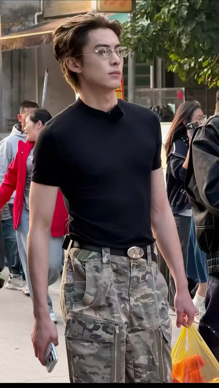 王鹤棣穿上了最性感的皮肤🥵🥵🥵王鹤棣紧身黑t迷彩裤路透