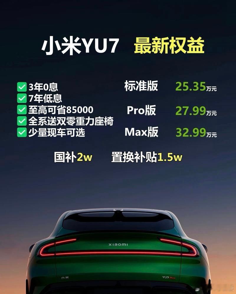 刚看到岚图也有七年贷的活动了,我对比了下小米、小鹏、特斯拉、理想,年费费率4.41%是属于偏高的,如果是认准岚图、偏爱岚图车型的朋友可以选否则更优先推荐小米或小鹏的方案,想低首付入手选小米、小鹏就对了,想省利息选特斯拉更香