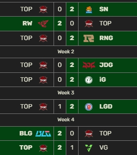 上一次他们打出如此糟糕的开局战绩还要追溯到2018年春季赛,彼时TOP的开局战绩为开局七连败。