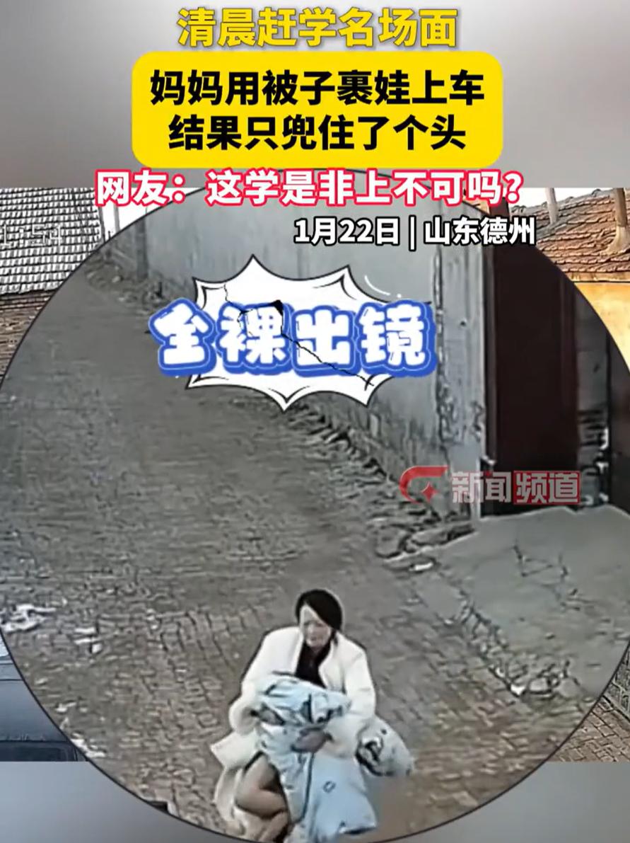 笑不活了!山东德州,一女子早上要送孩子去上学,可孩子赖床不起来,眼看上学就要迟到了,妈妈干脆用被子裹着孩子将其抱上车,有意思的是,孩子的头虽然盖着,但身体却光着露在外面。网友:这一看就是亲妈 视频中的场景可谓经典,妈妈的焦虑让人感同身受。她一边慌忙地抱着孩子,一边连孩子穿没穿衣服都顾不上。孩子还处于半梦半醒的状态,显然对外面的寒冷有些反应,但也只是微微蜷缩着双腿,显得有些无奈 妈妈后来解释,不是故意让孩子光着身子,实在是因为叫不起来。车里早就开好了暖气,不怕孩子冻着 有网友说:难道就差那5分钟?不能把孩子衣服穿好吗? 这其实真的不是那么简单。那些每天都和小孩“斗智斗勇”的家长都知道,尤其是早晨,孩子们特别抗拒起床。有的孩子一拉就会再躺回被窝,穿衣服更是毫不配合。真要是按照“正常”的流程来,可能五分钟根本不够,半小时也未必能搞定。这种时候,家长只能选择一种“速战速决”的方式 有人说这样对孩子不好,但养过孩子的都懂,早上那个忙乱劲儿,能顺利出门就是胜利。孩子偶尔这么折腾一回,其实也不会怎么样,说不定到了学校就精神了,回头还会当个笑话讲。真正重要的是,平时怎么慢慢培养孩子的时间观念。但有时候,尤其是冬天,被窝的诱惑实在太强,别说是孩子,大人不也想多躺五分钟? 所以说,没有完美的父母,只有想尽办法解决问题的爸妈。可能外人看着觉得滑稽,但对当时的妈妈来说,每一秒都是压力。她也没发脾气,也没粗暴打骂,只是用了一种快刀斩乱麻的方式完成任务