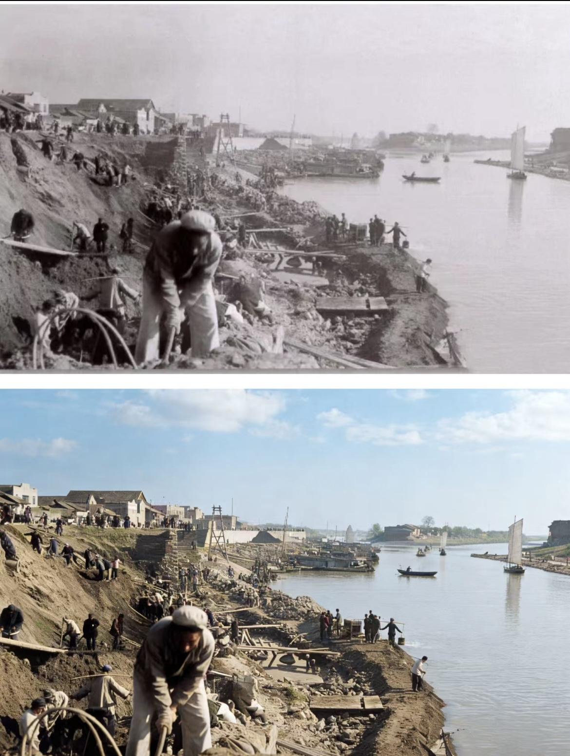 自1958年开始建赣抚平原水利工程后,抚河改道,南昌市区这边的抚河渐渐的失去了它原有的作用,后来慢慢地填埋改造,于是就形成了今天大家看到的抚河故道。老照片是70年代左右,大家正在热火朝天地改造南昌市区抚河故道。图说历史 南昌老照片 历史影像