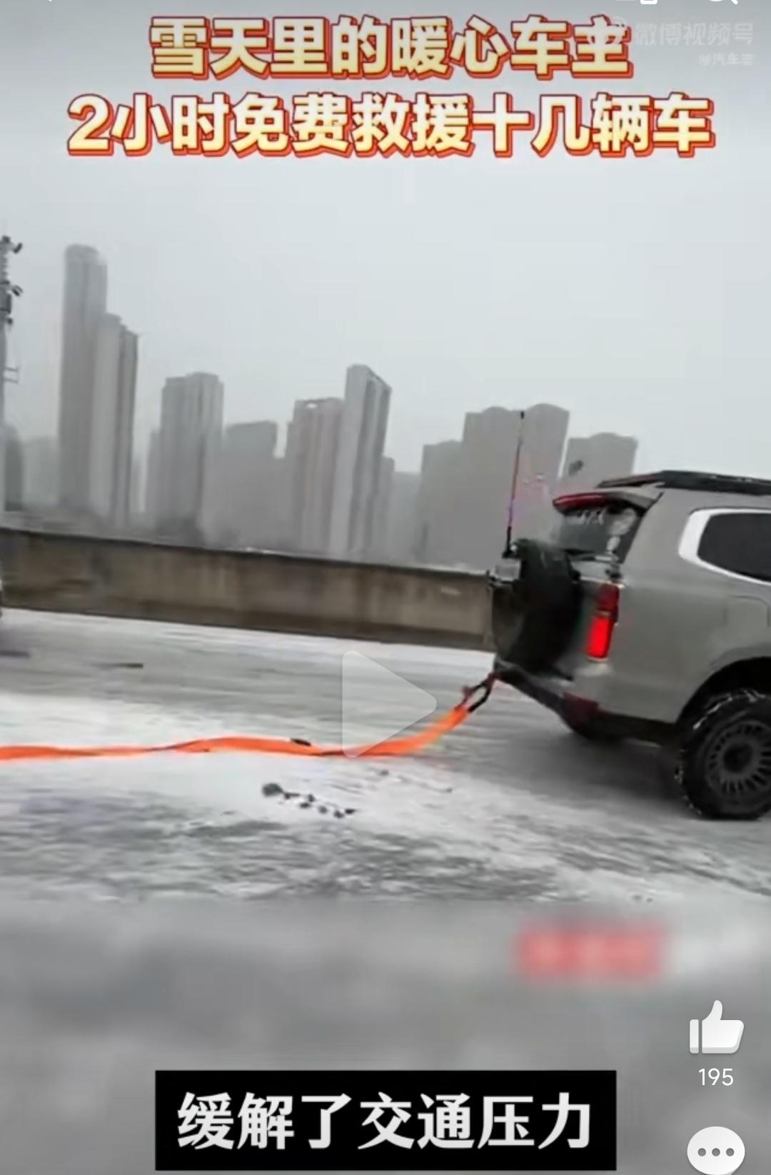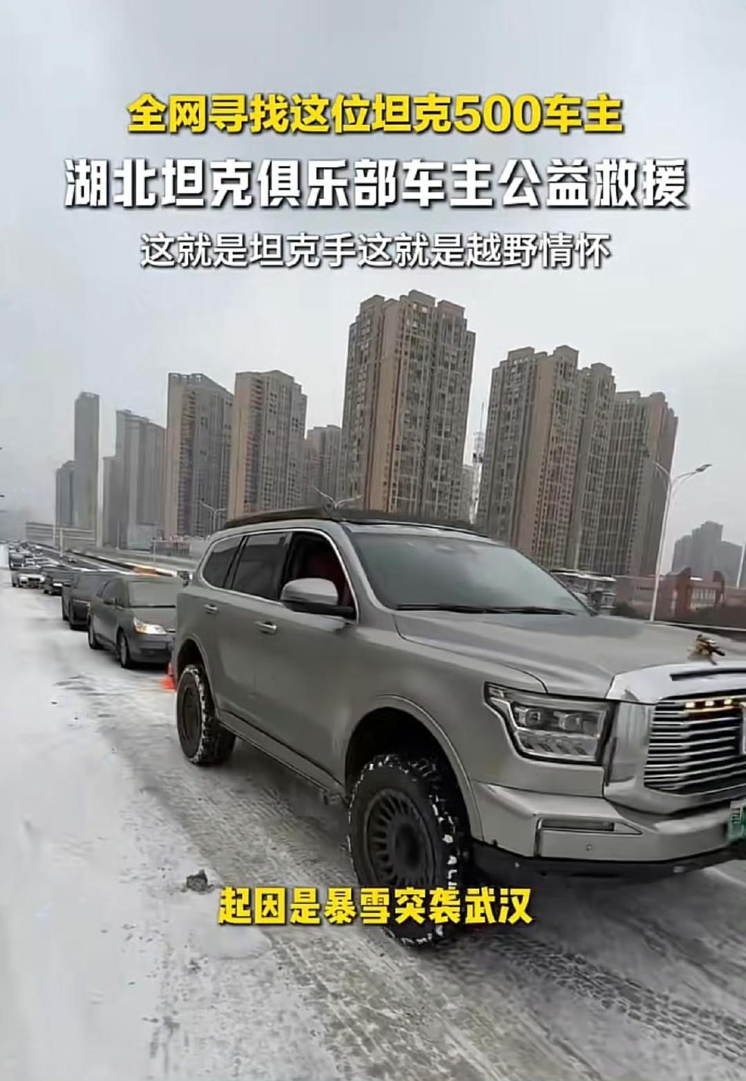 魏建军怕是要亲自感谢这位武汉大哥了,关键时刻还得看坦克,武汉大雪高架桥路面结冰,坦克500詹大哥救出了15辆被困在匝道上的车持续超两小时,道路最终恢复通畅,车主只说了一句“我以前也被别人救过”。 有一说一,救援这件事长城做的最好!每当雨雪天气救灾现场都会出现坦克车主忙前忙后!坦克真是活该卖的好啊! 难怪坦克ceo谷玉坤及魏建军公开致谢,称其行为传递“越野人的铁汉柔情”,硬派越野都是热心肠! 大家怎么看?