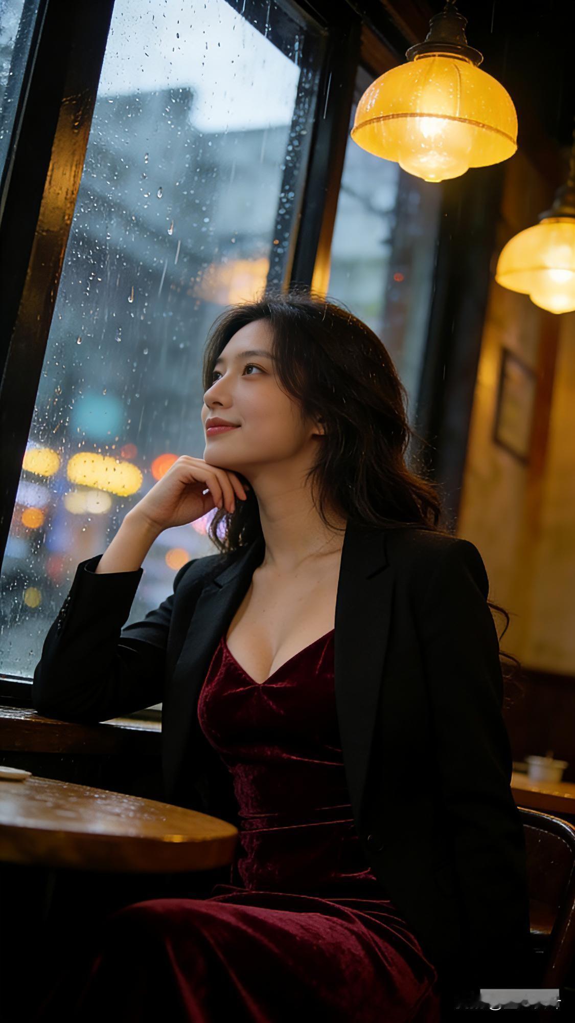 雨丝斜斜织着窗,街灯晕开暖黄的光。 我把肘弯搭在木桌,看水珠在玻璃上流淌, 像谁
