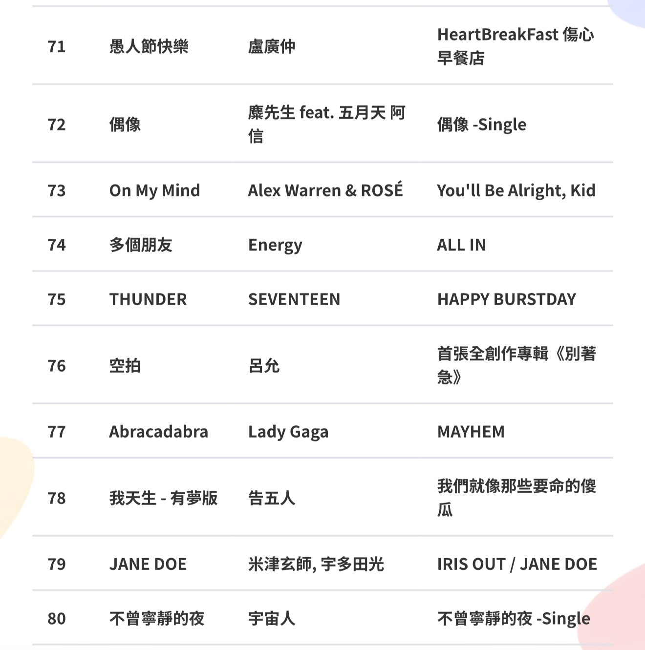hitFM百大单曲开始揭晓 71-80有卢广仲和Lady Gaga