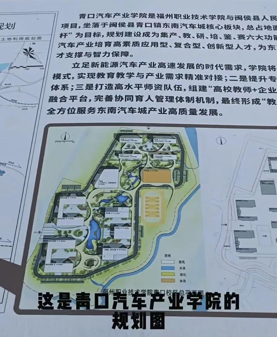快讯!福州这所职院要升本科!校区规划曝光...[机智] 今年福州表示将推动福州职业技术学院升格本科,而在近日青口汽车产业学院最新建设规划也在网上曝光。 内容显示,青口汽车产业学院坐落于闽侯县青口镇东南汽车城核心板块,总占地面积约122亩。 学校规划建设教学实训用房、图书馆、室内体育用房、校级办公用房、大学生活动用房、学生宿舍、教师宿舍、食堂等,办学规模约2293名学生。