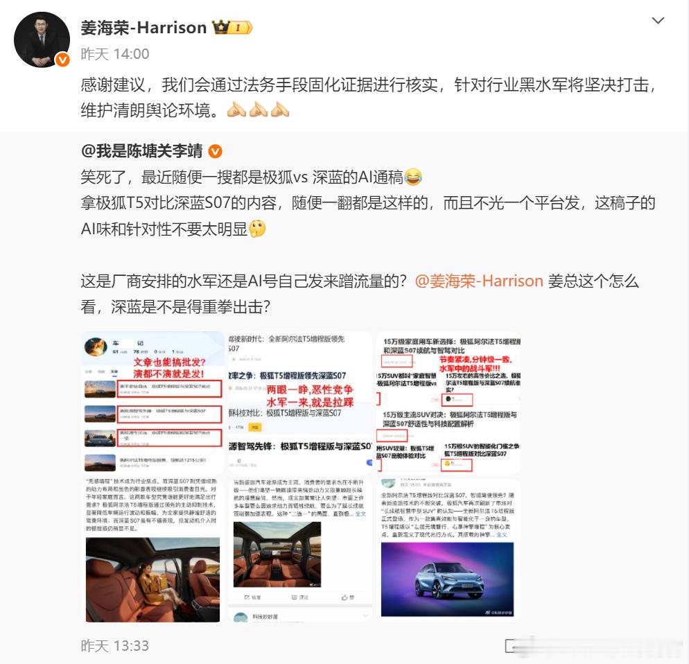 极狐和深蓝的高管都发文表态了,看来这回AI水军的“好日子”也要到头了