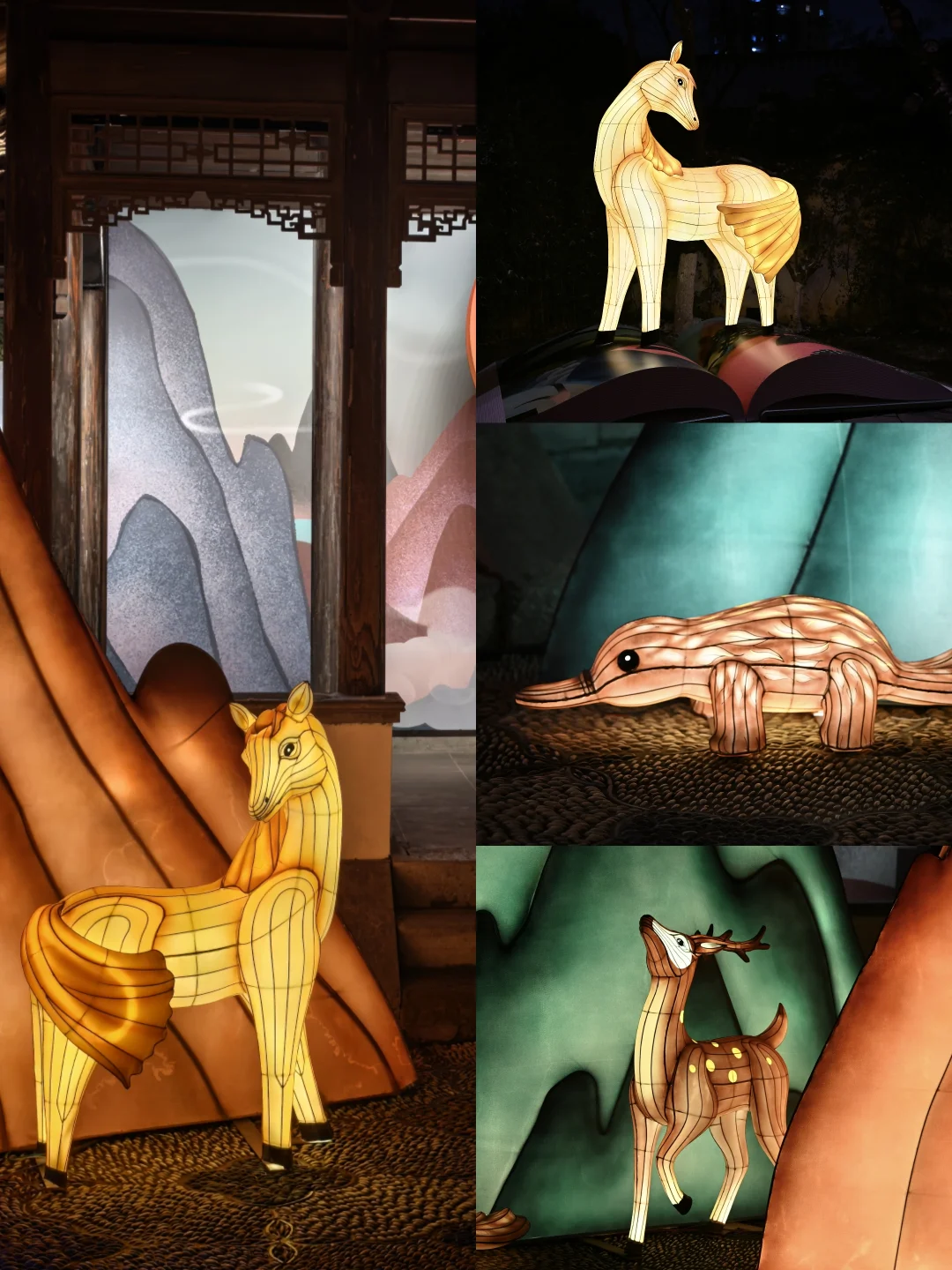 ⭐️这个灯会最有看头的是,LOEWE把自家新春动画片直接“搬”进了愚园!动画里那只翻山越岭的小马、灵动的小鹿、小鸭嘴兽、还有手作灯笼,全都变成了实体的艺术灯彩。在花灯的设计和摆放上,LOEWE还特别考虑了愚园本身的建筑和园林格局,将花灯或挂在廊下,或立在湖边,真的做到了一步一景,灯和园子相得益彰,高级感就出来了~