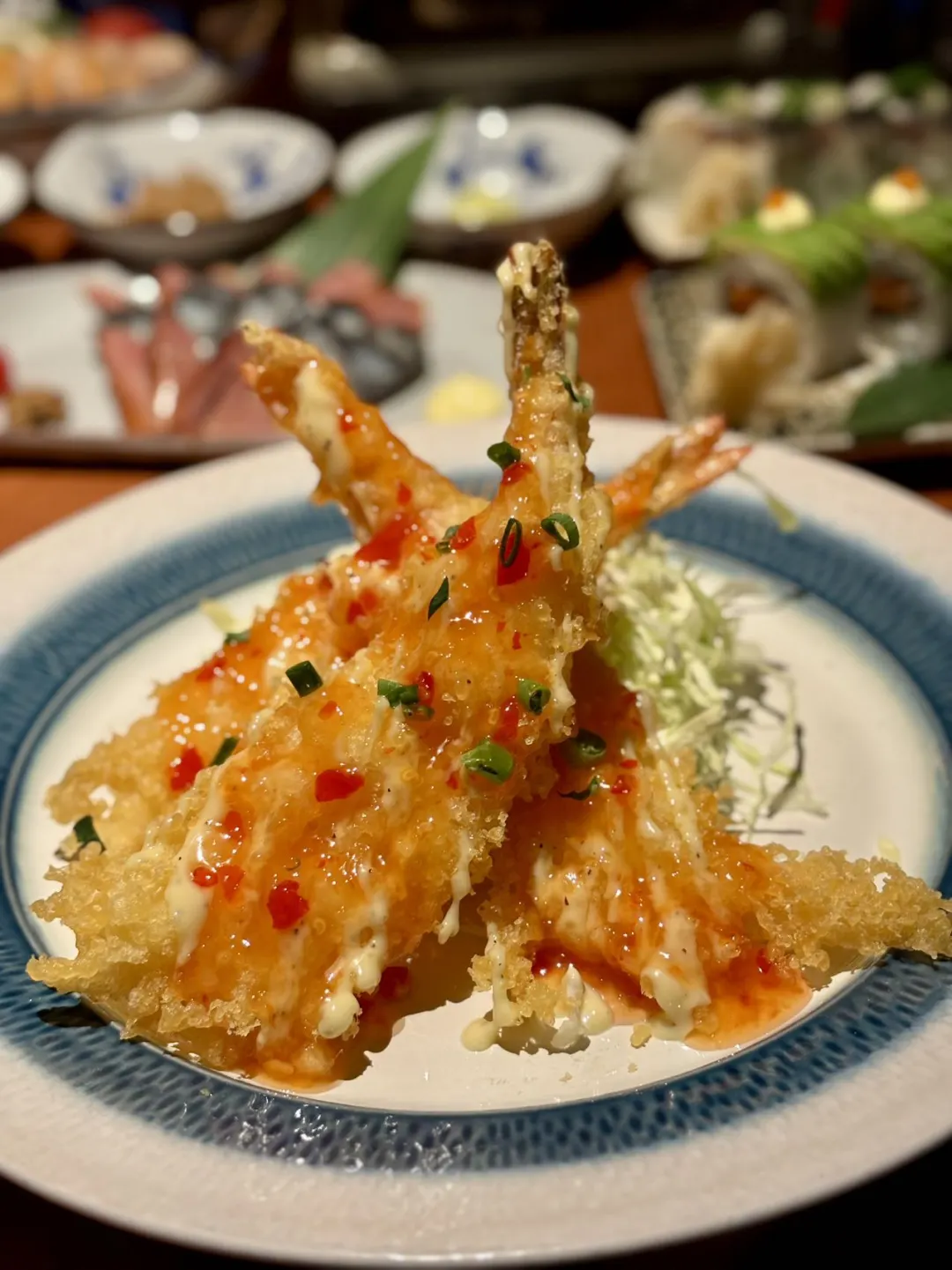 也是他家必点,大虾天妇罗蓬松酥脆,虾肉细嫩饱满,他家咸奶油搭配一点甜辣酱,口感丰富和谐。