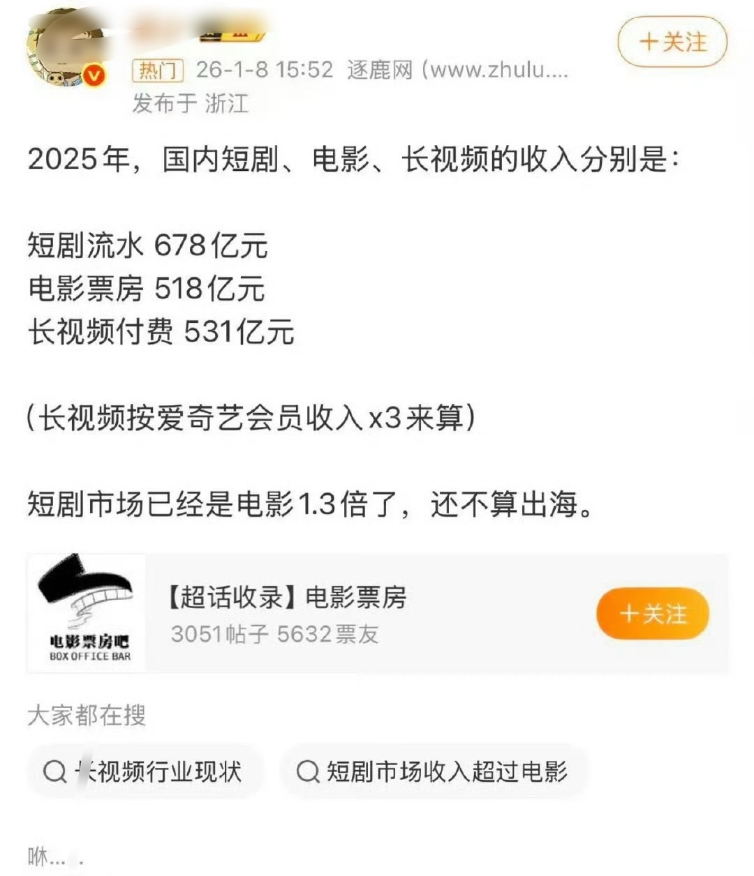 震惊短剧市场流水已经是电影的1.3倍了