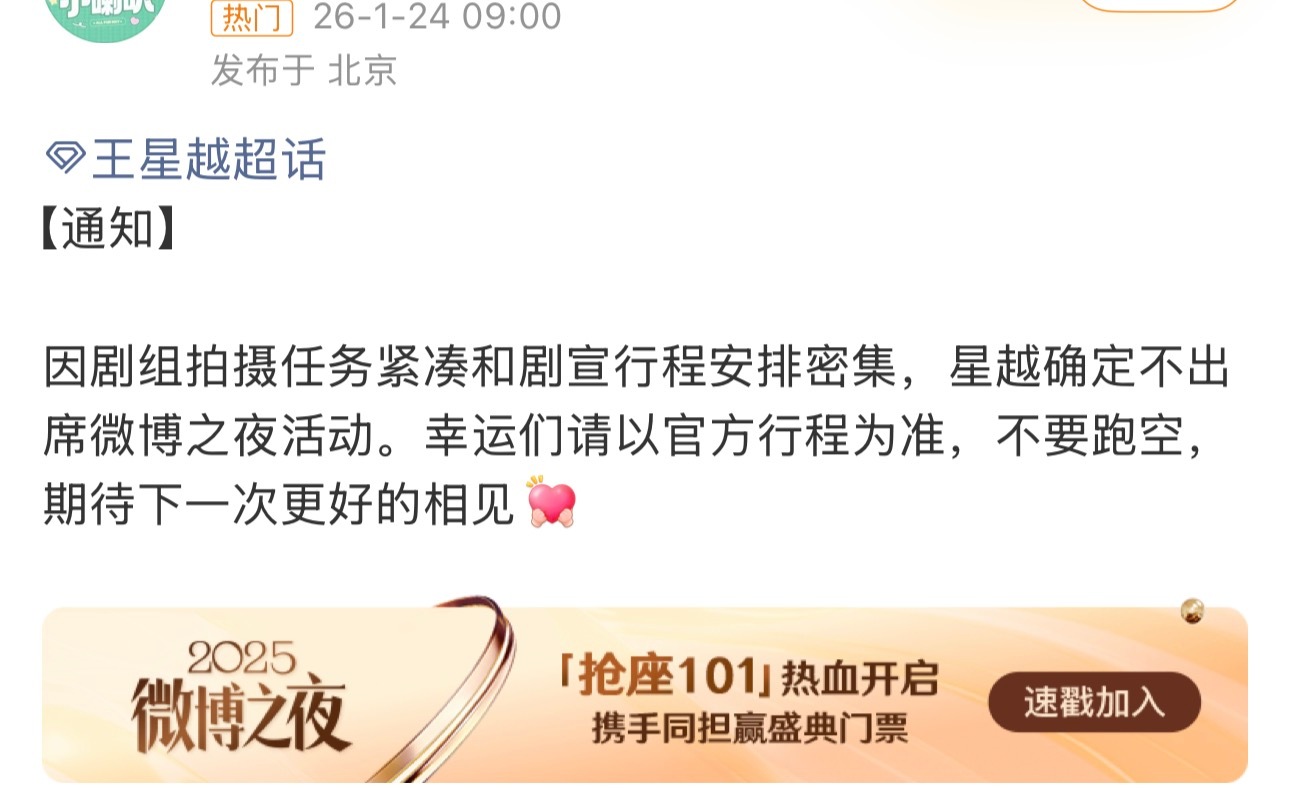今天罗云熙、侯明昊、王星越对接都通知了不去微博之夜。 不给新浪排座位的机会!