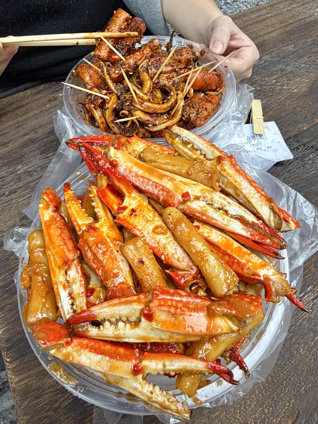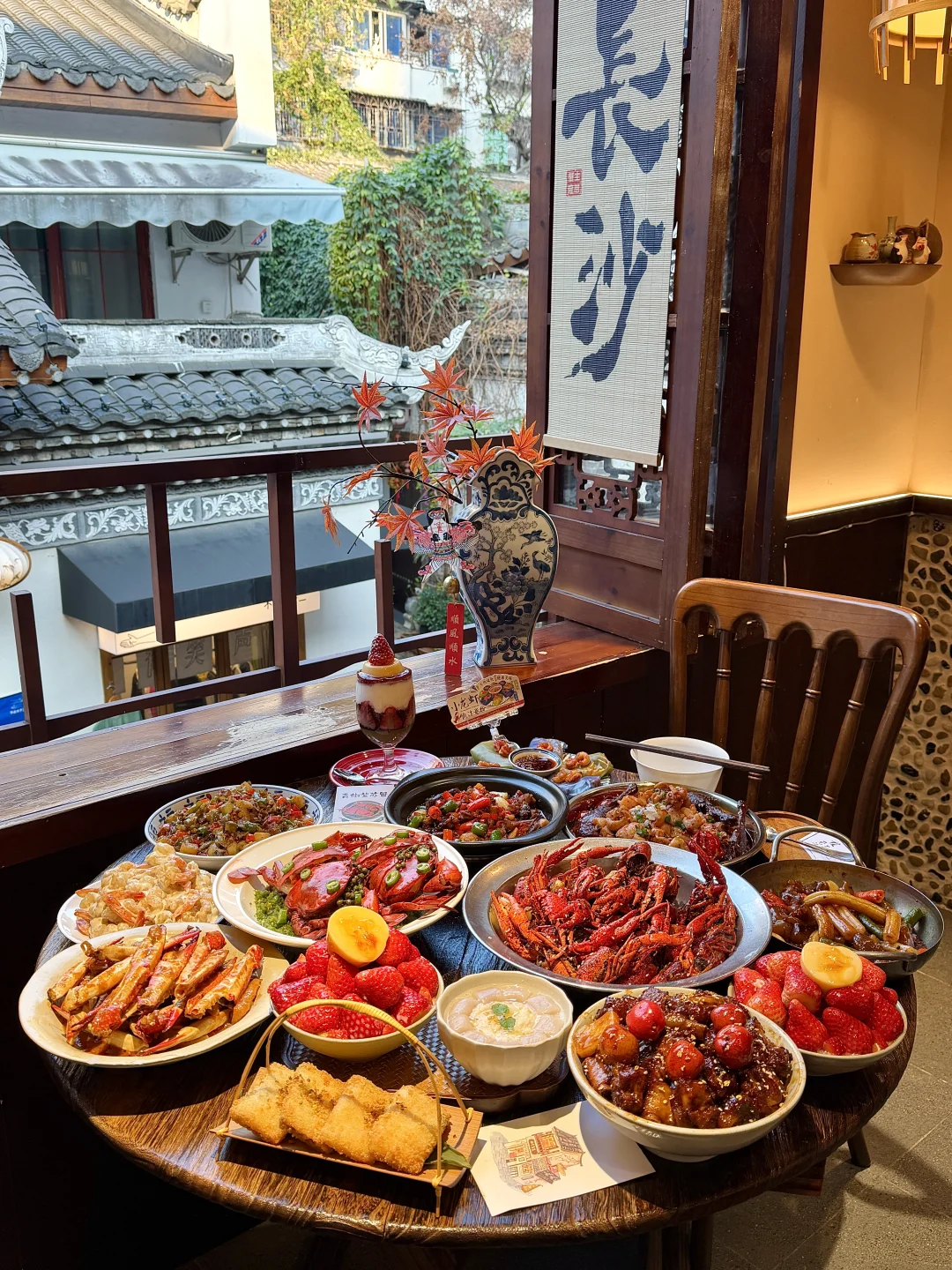 终于没踩雷了~在长沙跟风最成功的一次!之前就做攻略发现这家📍蟹主隆恩)口碑不错~独栋两层楼氛围绝美👍不仅拍照出片,湘菜、夜宵、甜品糖水……也好好吃啊😋就在地铁口!吃完还可以去苏井巷citywalk~难怪长沙本地人都扎堆来吃! 不夸张,味道和性价比都吊打市中心那些网红店…我们点的酱板鸭牛蛙好吃哭!份量好足很有锅气~牛蛙煮的好入味都吃完了。芥末虾球真心要推荐,每次必点!香辣蟹钳又大又入味~铁板烧也是地道老长沙味!吃完辣的记得再来份草莓芭菲杯和🍓雪冰!香甜解腻好幸福