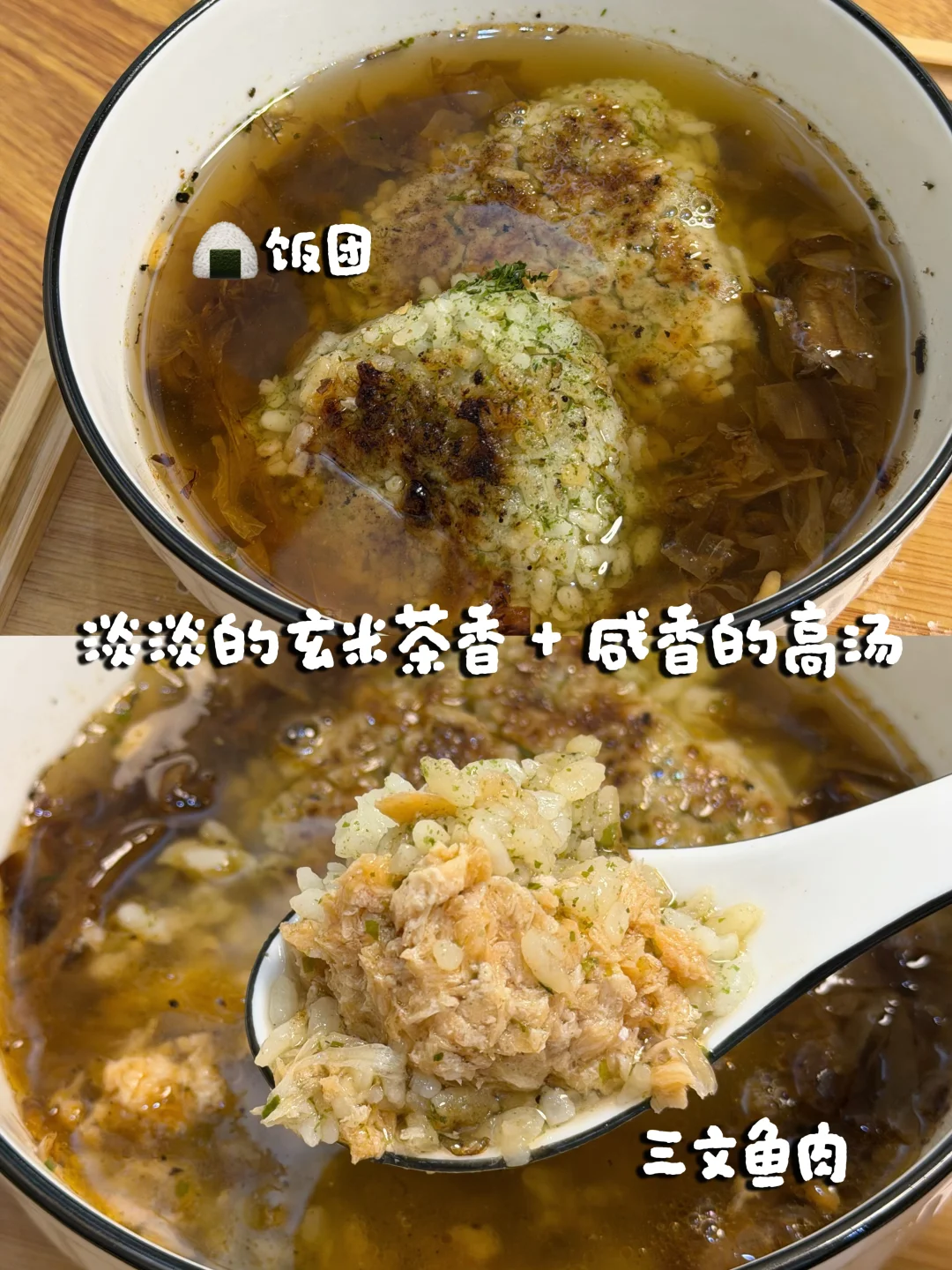 这里的茶泡饭是搭配🍙煎过的饭团 所以味道更香~特制汤底的味道是淡淡的茶香和柴鱼鲜!