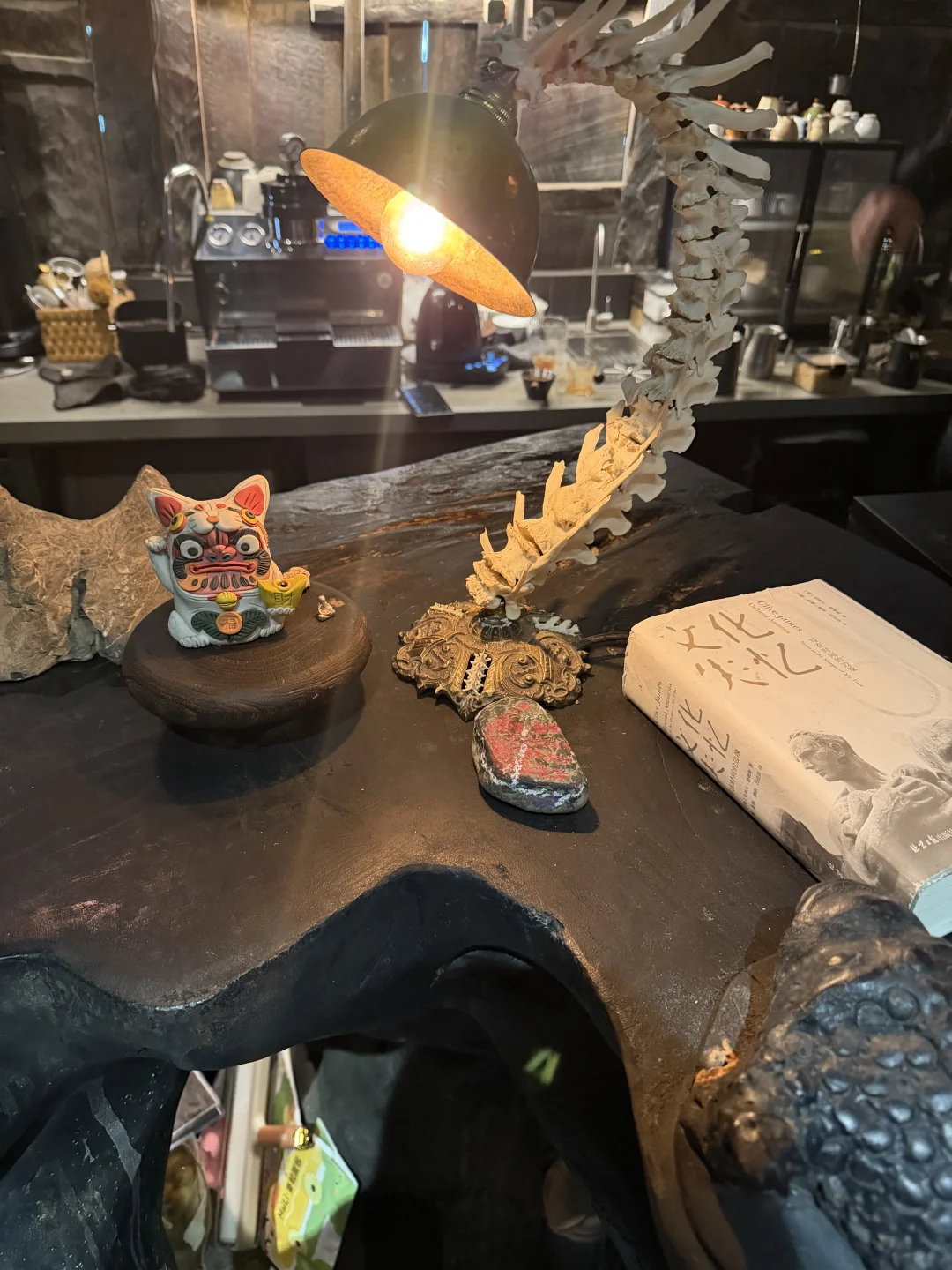 然后我们一路来往福田所在的万福村打卡了万峰林最文艺的咖啡“瓦鸢”WAVE YARD ,拾级而上,有一个很开阔的平台可以看到福田的景观,可惜这个季节看不到。店里的风格~嗯~很央美~有很多万峰林意象的艺术装置,很国风又很有当地民族特色。咖啡菜单有点单一,点了两杯奶咖~嗯~甜~适合春夏来观景台坐一坐,点美式吧~