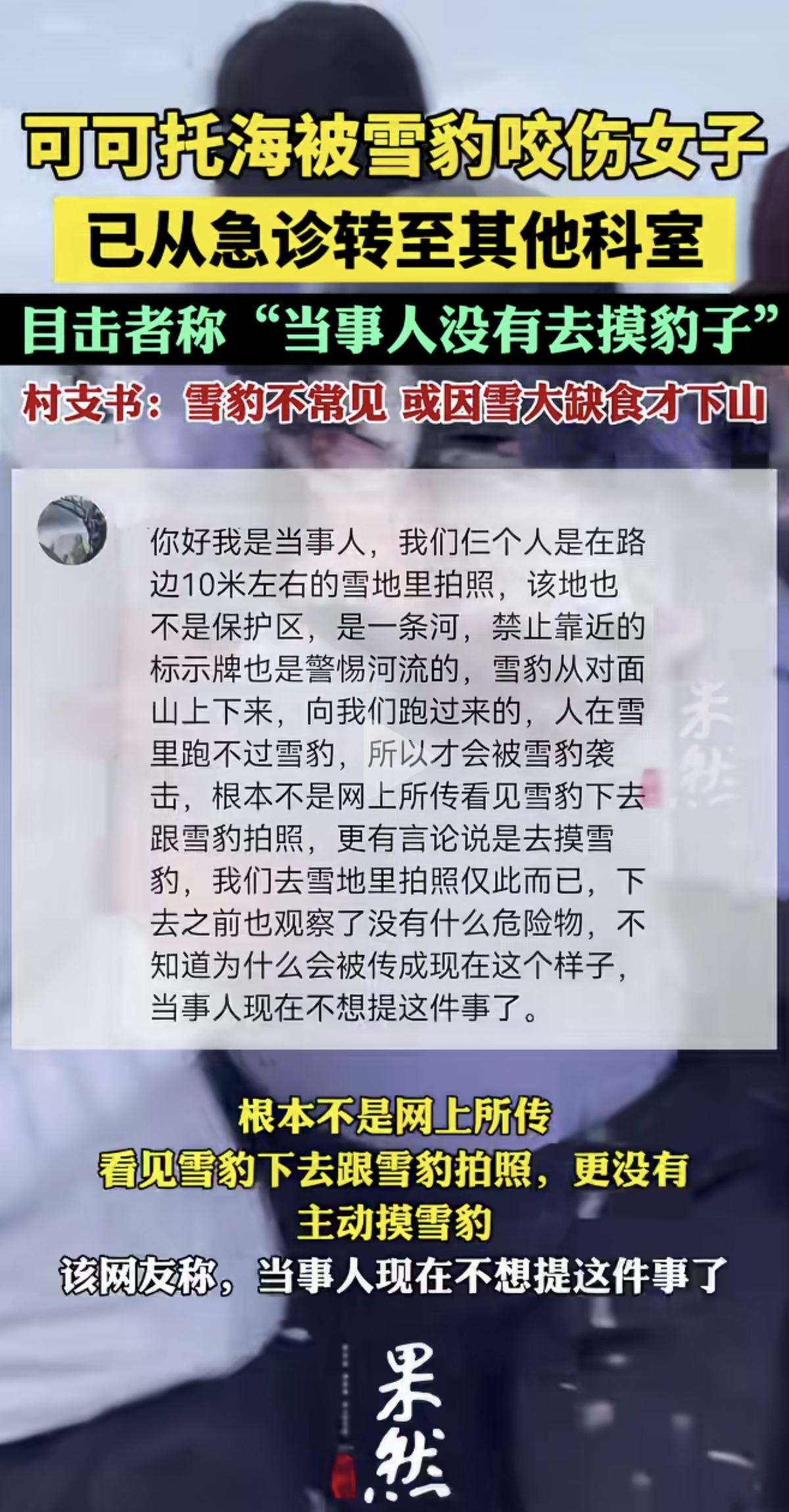 刚从急诊转出来,这位被雪豹咬伤的女游客就发文澄清,觉得自己是无辜的,不该被网友们