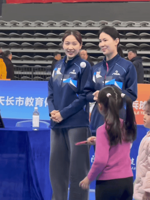 钱天一和王添艺参加天长举办的“国手面对面·乒乓燃激情”交流赛暨见面会活动🏓指导小选手中cr·-Yy
