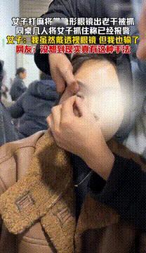 据中安在线1月23日,女子打麻将带隐形眼镜出老千被抓,同桌几人将女子抓住称已经报警,女子:“我虽然戴透视眼镜,但我也输了”。没想到现实真有这种手法。