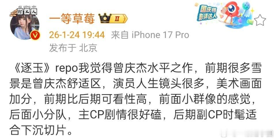 《逐玉》repo🈶!总结起来就是景美,人美,cp好磕,小群像好看!说真的,我迫