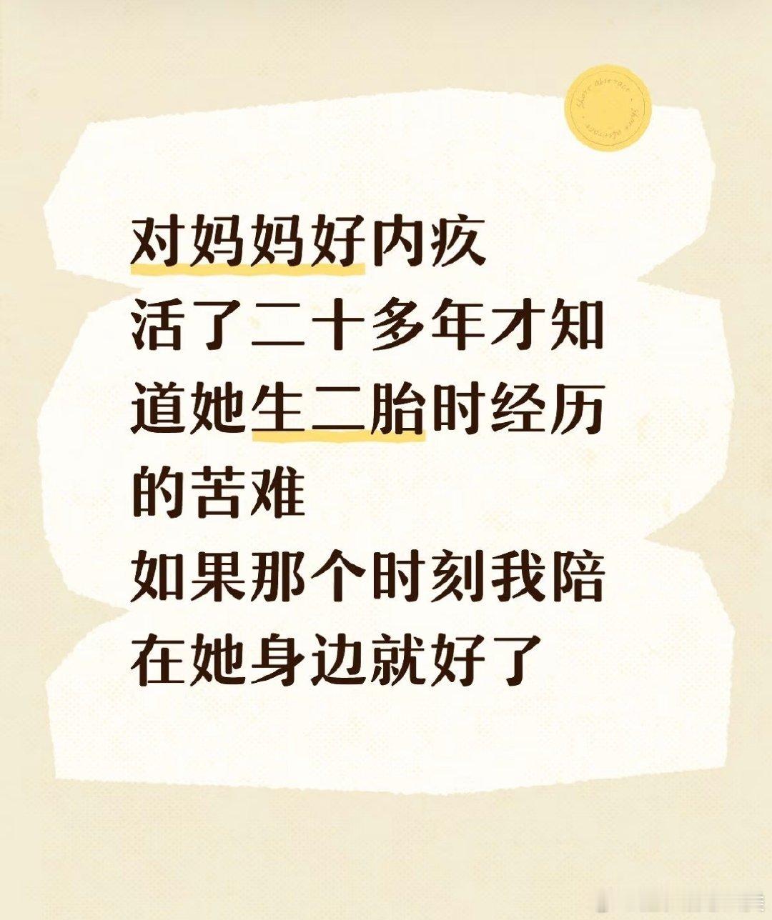 对妈妈的生二胎经历感到内疚,意识到她所承受的苦难。