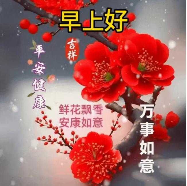 國泰民安有福享, 人勤德厚保安康, 清晨問候送陽光, 快樂吉祥財運長。 早上好!