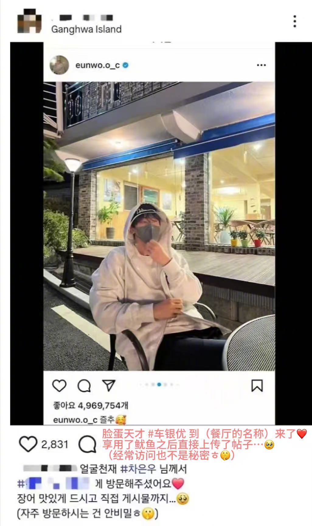 【Theqoo】据说是车银优父母开的餐厅,但是为了装作是车银优常去的店发了这样的instagram贴子