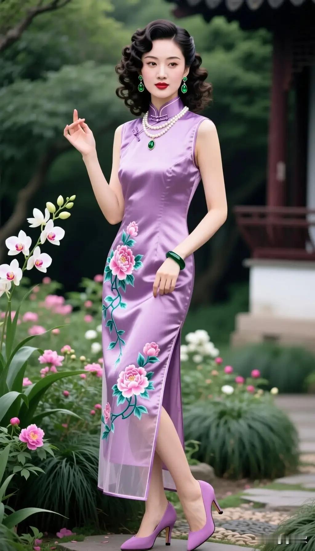 中国旗袍,百年传承。 文化底蕴 ,优雅风尚。 修身裁剪,开叉设计。 身姿妙慢,凸显性感。