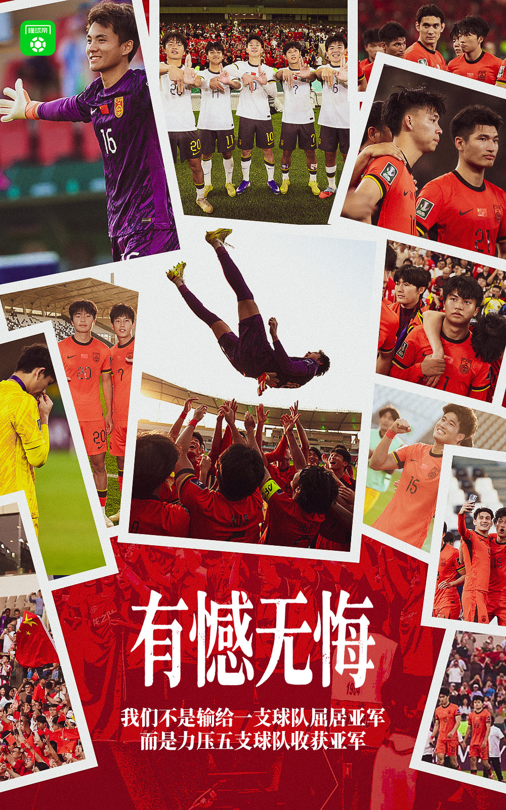 有憾无悔!我们不是输给一支球队屈居亚军,而是力压五支球队收获亚军。懂球帝海报u23国足亚洲杯亚军U23国足vs日本