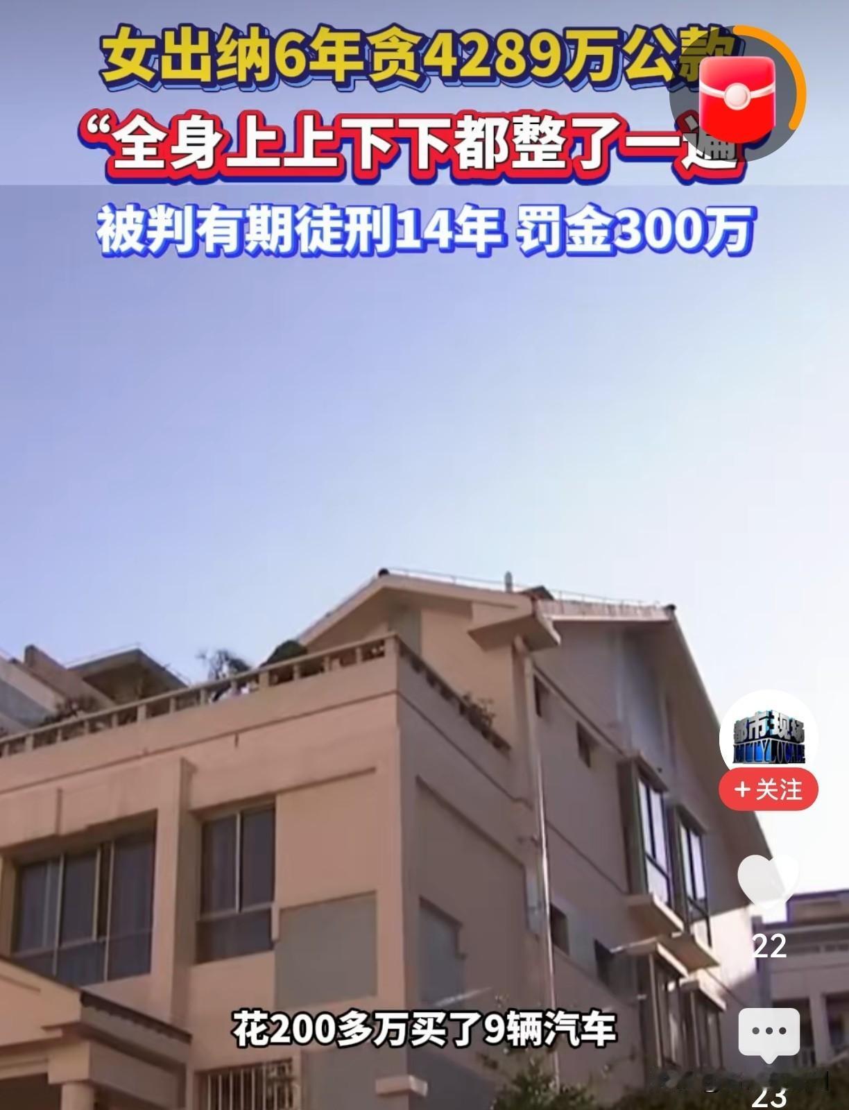 6年狂贪4289万!女出纳买包如买菜,庭审一幕却让全场沉默 你敢信?一个看起来老实巴交的女出纳,6年竟偷偷挪走单位4289万!平均每天狂捞近2万,买奢侈品就像我们买菜一样随手。可当她站在法庭上痛哭时,所有人都倒吸一口凉气…… 一开始,她也就是个小打小闹。 几百、几千地挪,心里还扑通扑通跳。可时长,发现根本没人察觉,胆子就跟吹气球似的胀起来了。从几万到几十万,最后上百万的转,眼睛都不带眨。 她管钱,也管着自己的欲望深渊。 6年,4289万,怎么花的?说出来都像编故事:奢侈品柜姐见她如见财神,新款包包直接排着队送上门;手表首饰成盒买,出国旅游像散步,住的是五星级,吃的是私厨宴。身边人还以为她中了彩票,其实她心里清楚——每一分,都沾着公家的血汗。 日子过得比电视剧还浮夸。 可飘在天上的生活,终究要落地。一查账,漏洞大得吓人。办案人员数零都数了好几遍:“四千两百八十九万?”她低头咬着嘴唇, earlier 那副一掷千金的潇洒,全碎了。 法庭上,她哭得发抖。 说后悔,说对不起,说愿意退钱。可法律哪是眼泪能融化的?判决下来:14年牢狱,300万罚金。当初买一个包的钱,现在够她挣多少年? 更扎心的是:她贪了别人几辈子赚不来的钱,却赔上了自己一辈子的自由。曾经拎着名牌包的手,如今戴的是手铐;曾经晒豪华晚餐的朋友圈,只剩铁窗下的影子。 人啊,总在失去时才懂“够用就好”四个字多沉重。 她原本也许能踏实结婚、孝顺父母、陪孩子长大……如今只剩铁窗14年。贪念爬进心里时,谁都以为自己是例外,可监狱里哪个不是“例外”?