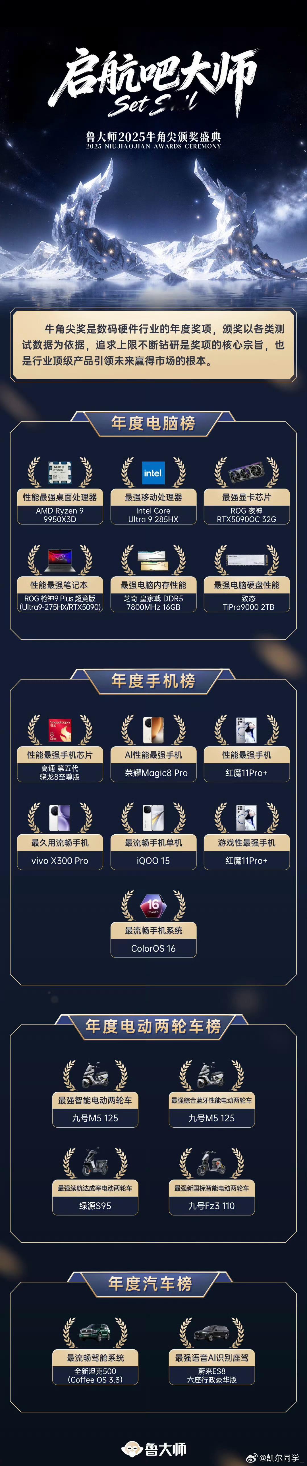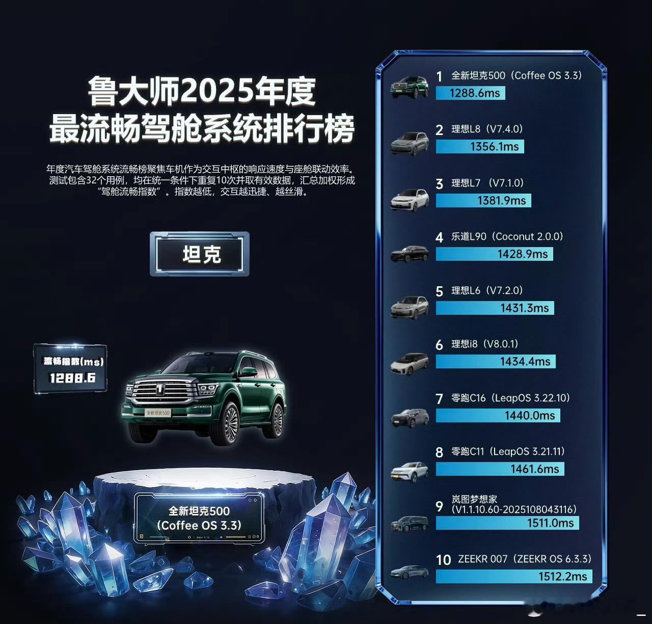 鲁大师2025牛角尖颁奖盛典鲁大师这一波真是太懂了!以前总听厂家讲“丝滑体验”,现在直接拉Excel表格比数据——就跟考试从写小作文改成客观题一样,谁在裸泳一目了然最让我惊喜的是坦克500这种硬派越野,智能座舱居然能跟新势力旗舰打得有来有回。这说明什么?就像健身教练突然秀出流利外语,传统品牌真卷起来潜力惊人啊!现在看车得带放大镜了:语音识别率差1%、触控延迟多0.1秒,都可能藏着日常用车的小痛点。毕竟车机不是手机,开车时分心0.5秒都不安全。所以我的选车观很简单:参数要硬,体验要润。你觉得还有哪些“隐形参数”该纳入评分?