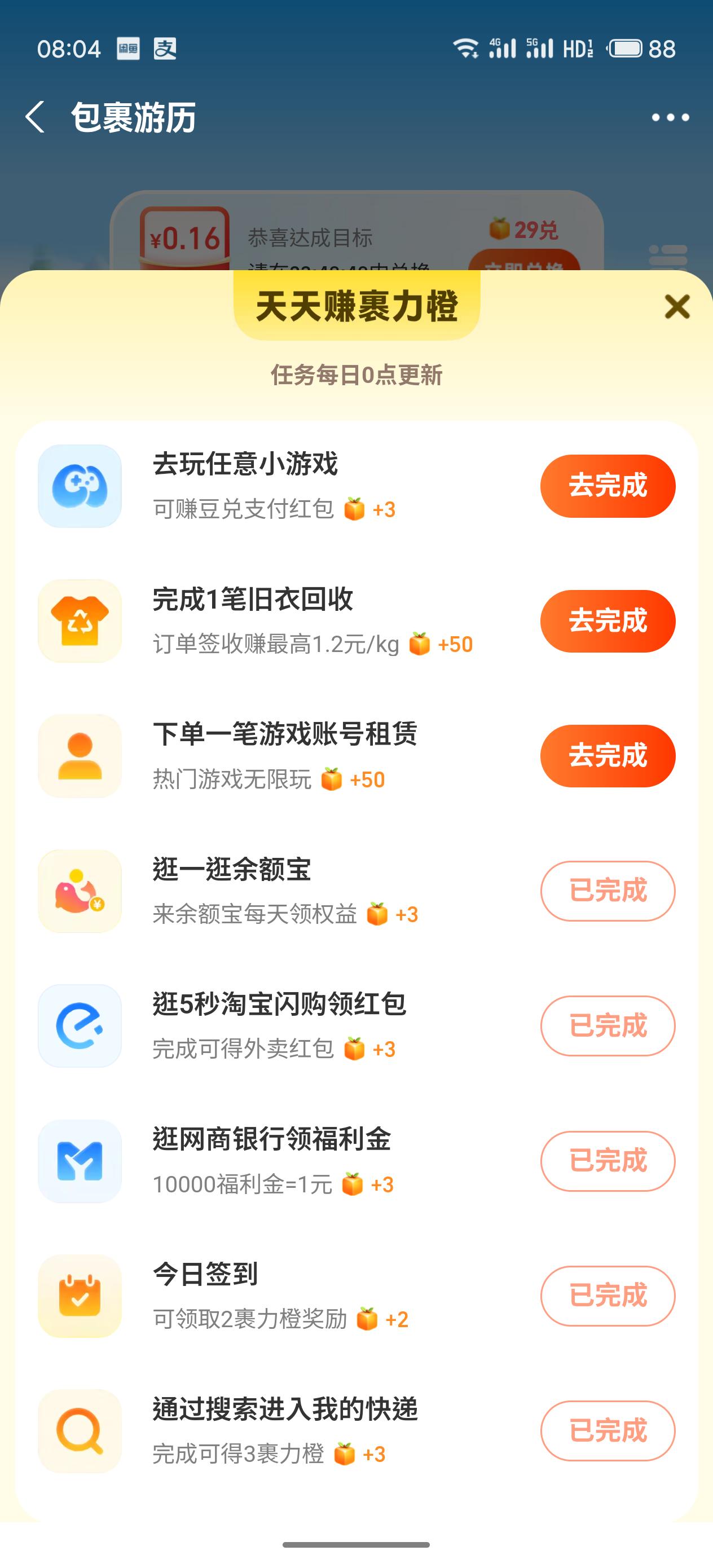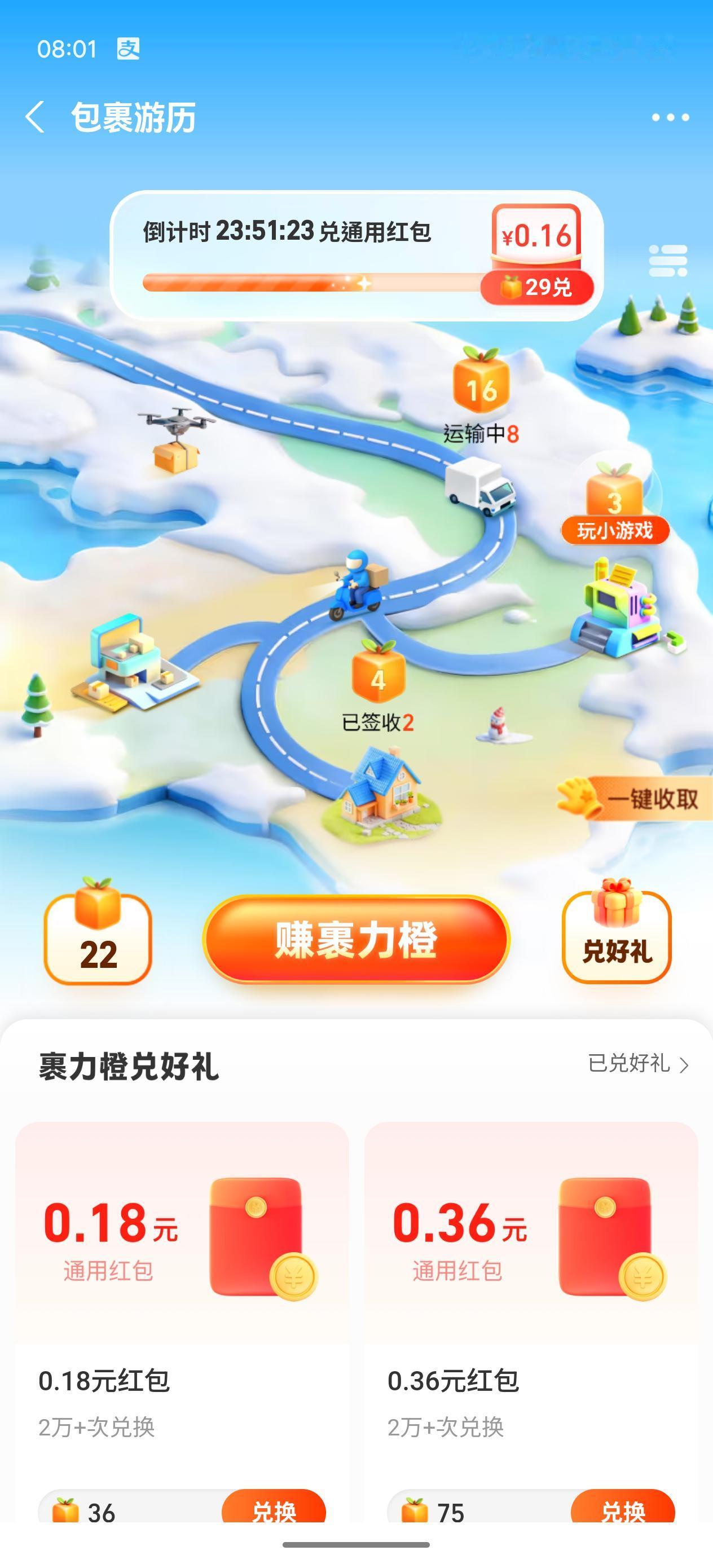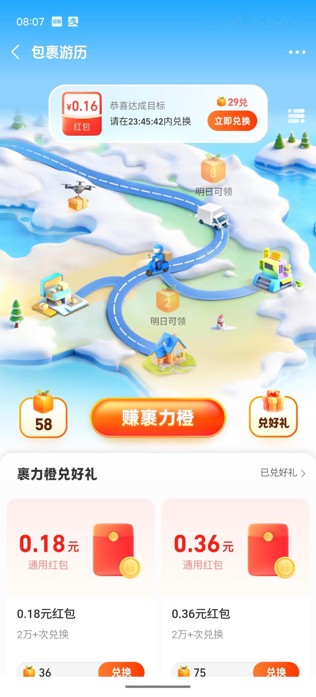 08:01开始 08:07完成 获得积分58-22=36 兑换一个🧧0.16