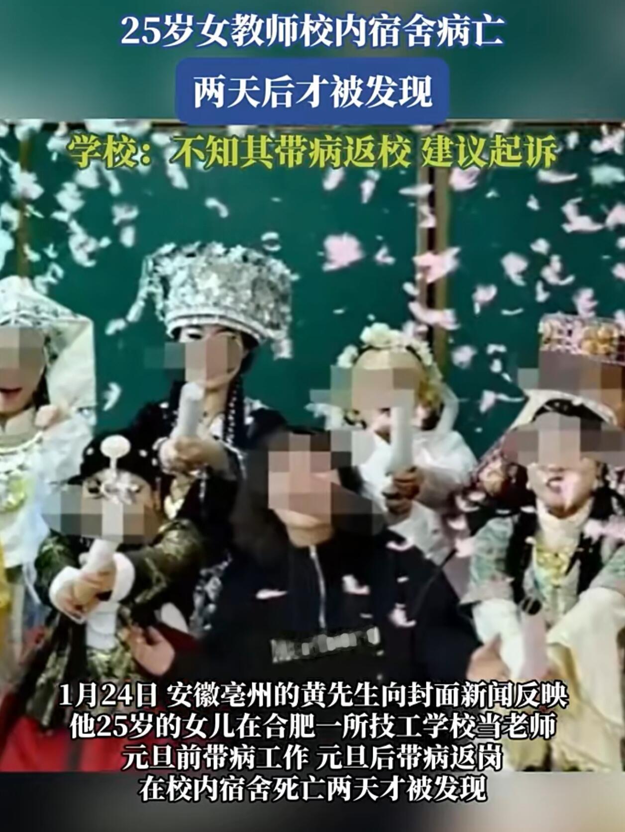 唉,刷到这新闻心里真堵得慌。合肥一个25岁的女老师,叫小如,元旦后带病回学校宿舍,结果人没了,两天后才被发现。这姑娘是技工学校的班主任,元旦前就感冒了,还硬撑着带学生排节目演出。12月31号那天她发高烧想请假,居然没被批准,还是弟弟来接她去诊所看的病。第二天病历上还写着病情没好转,她就这么回学校了,谁知道这一走再也回不来。 家属觉得,学校没尽到责任。老师带病工作,学校怎么也该多关注一下吧?结果学校说,她返校后没到岗上班,他们根本不知道她生病回来了,还让家属去走法律程序。小如爸爸现在就要学校给个说法,为什么对老师的健康这么不关心。 这事真挺让人难受的。学校到底该不该管老师的身体?老师生病请假,是不是该多体谅一点?家属要个说法过分吗?学校是不是真的一点责任没有? 我看这事儿,学校恐怕难撇干净。虽然他们说不知道老师带病返校,但一个员工发烧请假没批,事后人不见了整整两天都没人发现,这本身就说不过去。宿舍不是校外,是在学校里头啊,管理上是不是太松了?再说,老师之前明明已经生病坚持工作了,学校难道一点都没留意? 有人可能觉得,老师自己也没坚持休息,学校哪管得了那么多。但换个角度想,咱们打工的谁没硬撑过?很多时候不敢请假、怕耽误工作,这时候单位要是多问一句、多关心一点,也许就能避免悲剧。学校毕竟不是普通公司,老师身体出问题,影响的是一帮孩子。 说到底,这事暴露的还是对人的冷漠。流程是流程,但人不是机器。如果请假制度僵化,如果同事之间少了点关照,如果宿舍管理形同虚设,悲剧就可能发生。家属要的不是赔多少钱,是要一个交代——为什么好好一个姑娘,在学校里没了,却没人及时知道。 希望这事能引起更多学校、单位的重视。别总等到出事了再推责任。老师的健康都不当回事,还谈什么教育?咱们社会需要温度,得从珍惜每一个认真工作的人开始。