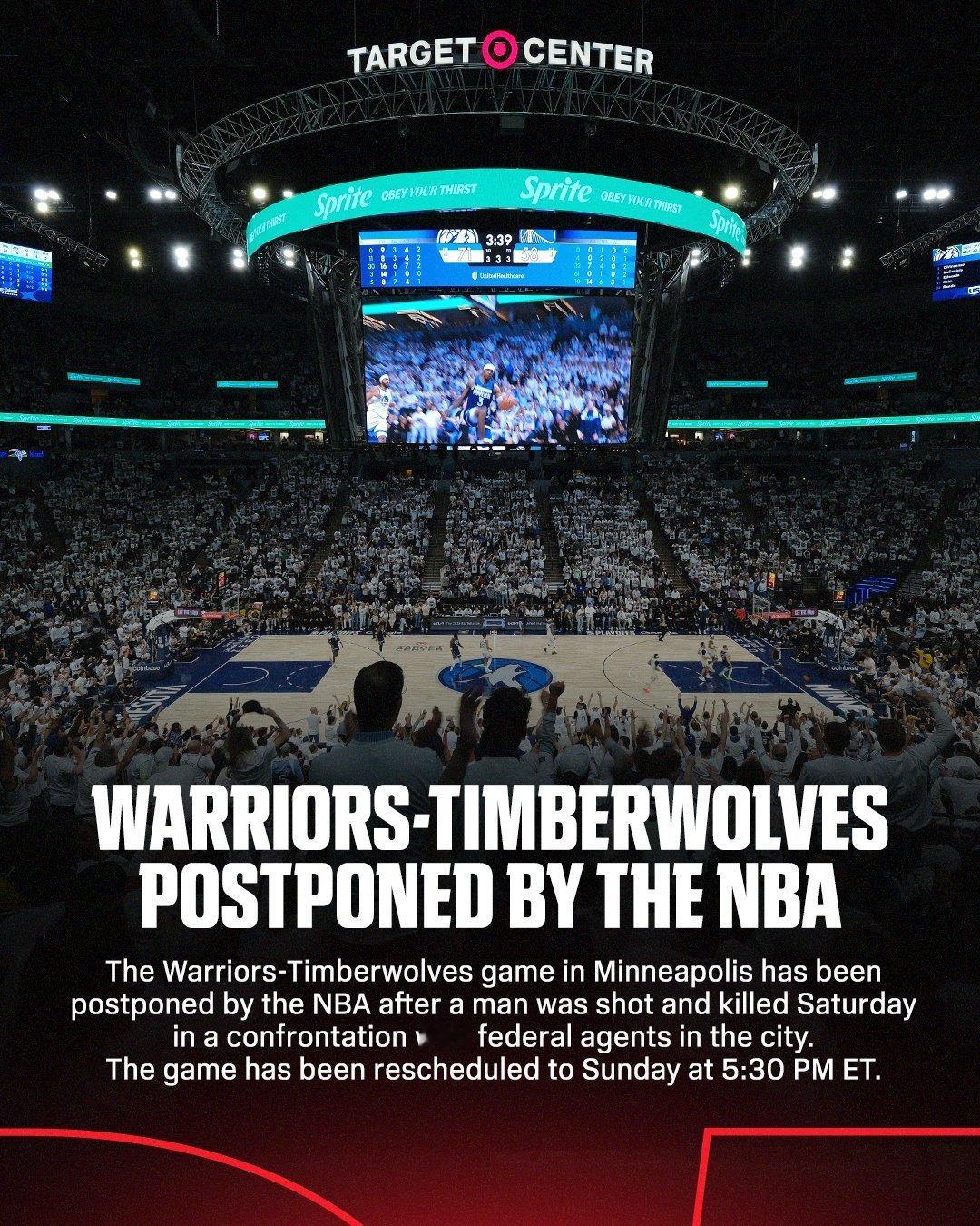 Shams:原定今日06:30进行的,森林狼主场对阵勇士的比赛被延期至26日06:30。由于明尼阿波利斯市周六发生一起男子与联邦特工对峙时遭枪击身亡的事件,NBA已推迟原定于当地举行的森林狼队对阵勇士队的比赛。这是该市一周内第二起、本月第三起涉及联邦执法人员的枪击事件。这场比赛已重新安排于美国东部时间周日下午5点30分(北京时间26日周一早晨6:30)在明尼阿波利斯举行,这也使得两队在周日和周一将进行背靠背的对决。森林狼勇士比赛延期