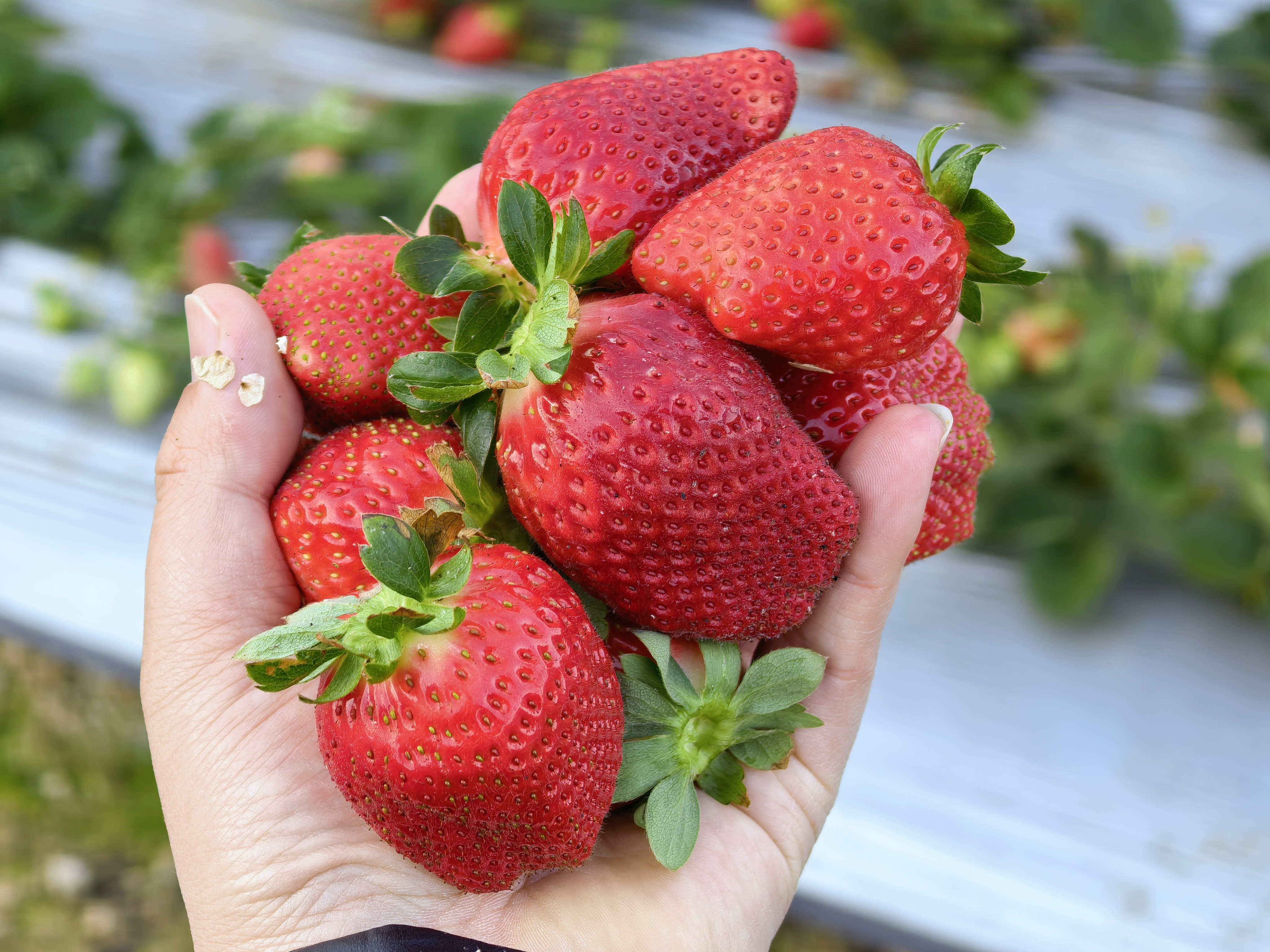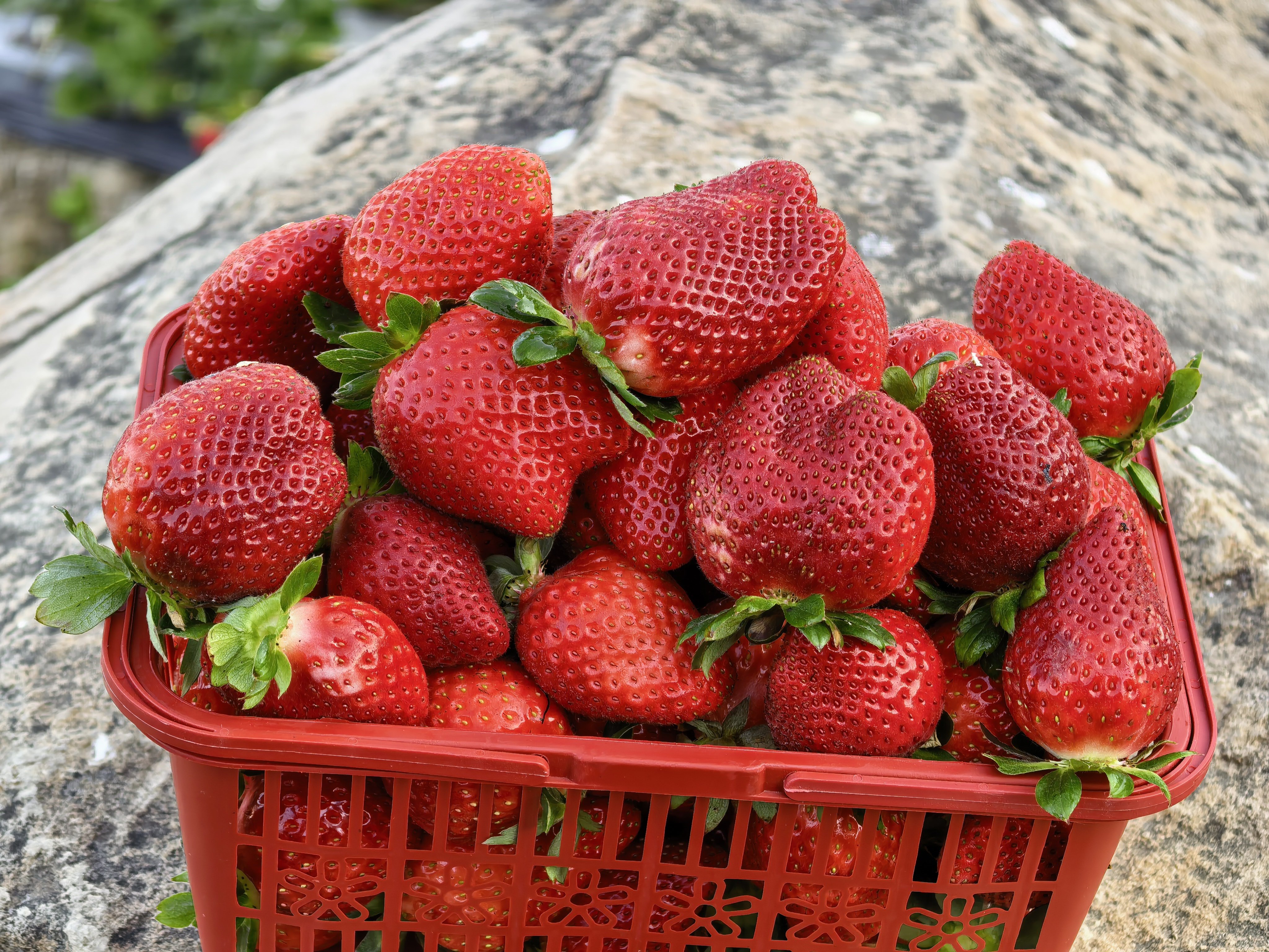 路过草莓园,给孩子搞两筐回家好大一个的!