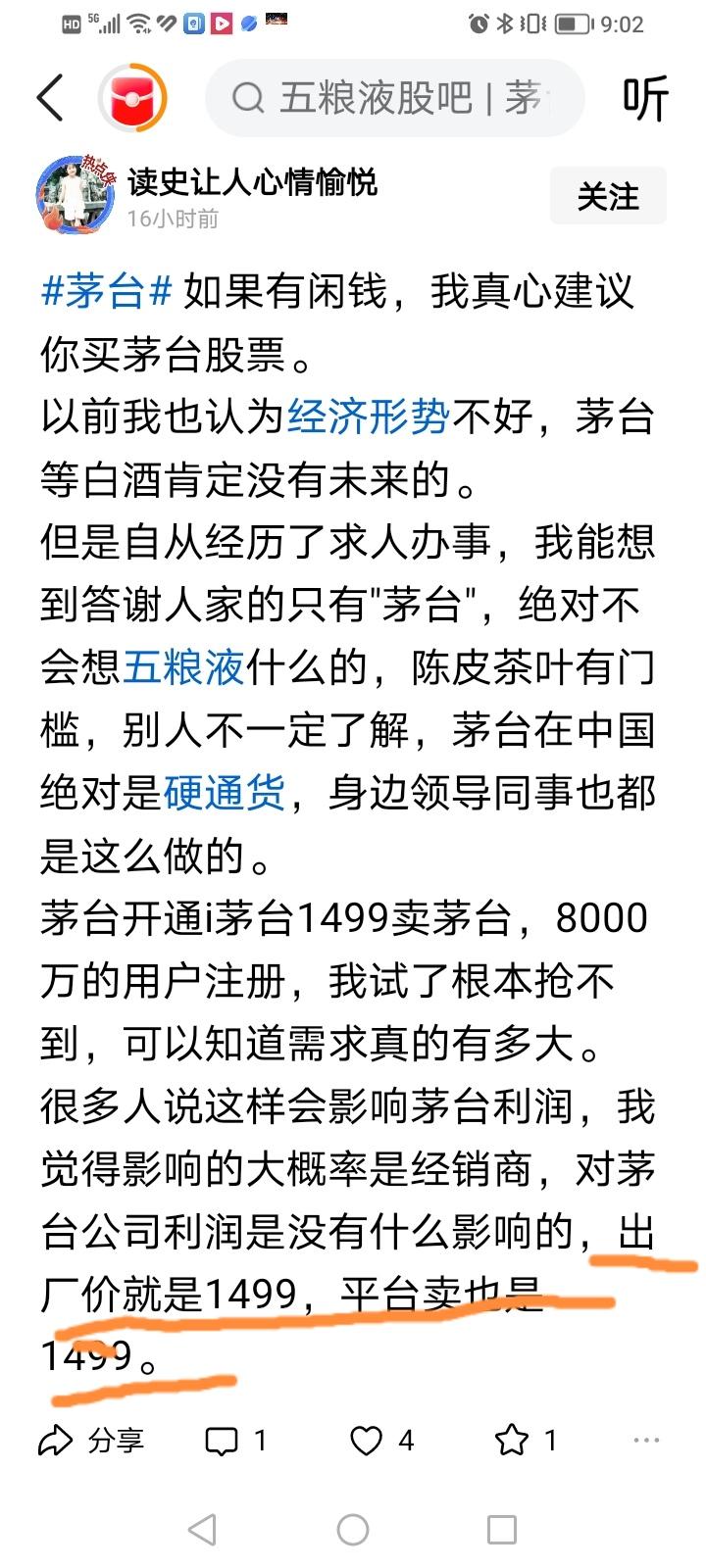 你知道53vol飞天普茅现在的批发出厂价是多少钱吗?可能有人会回答1499元,有人会回答1163元,有人会回答969元。正确答案是1163元。 飞天普茅的批发出厂价是在2023年10月调整到1163元,涨价20%。969元是2023年10月前的批发出厂价,1499元是市场指导价。 今天在头条上看到一篇小作文居然说53vol飞天普茅的出厂价是1499元,平台卖出价也是1499元,我笑哭了! 没想到在信息爆炸的互联网时代,有人还总呆在自个的信息茧房里不出来,还自以为是,而且这种人还不少。