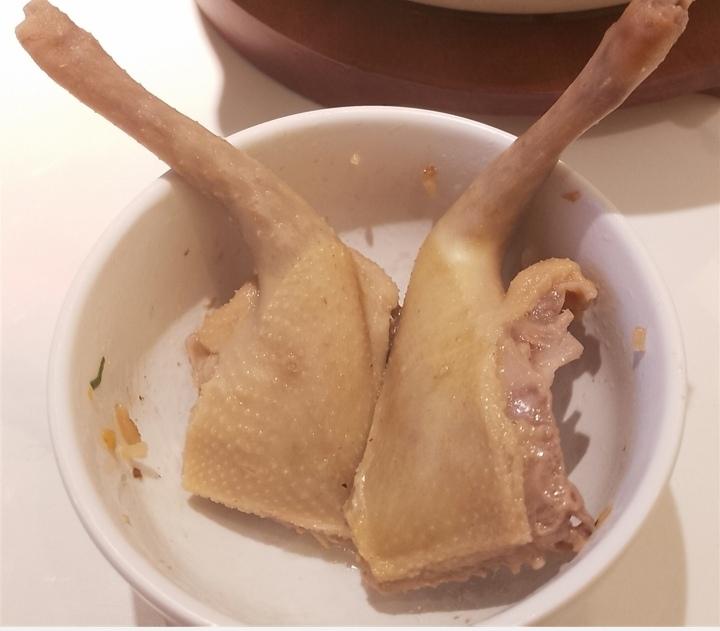 说一说广州人炖鸡汤,炖瘦肉汤,长时间炖汤里面的肉为什么不吃?因为鸡肉,瘦肉经过长时间炖已经变成渣了,你看看我拍的照片就知道了。但是如果我炖花胶,花胶炖软了是可以食的,如果用五指毛桃浸鸡,鸡肉是可以食的,如果是打火锅,例如椰子水煲鸡汤,鸡肉是可以食的。图一图二图三图四炖汤里面的肉已经变成渣了,看看图五。图六是浸鸡或者浸乳鸽,鸡肉熟就可以食了。图七图八是花胶,炖花胶是可以食的,图九是浸熟的乳鸽腿可以食。