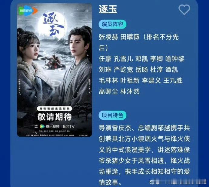 逐玉开启招商张凌赫田曦薇逐玉招商了 以小见大诠释家国情怀,《逐玉》招商热度居高不下,双平台资源加持,有望实现口碑与商业价值双赢。